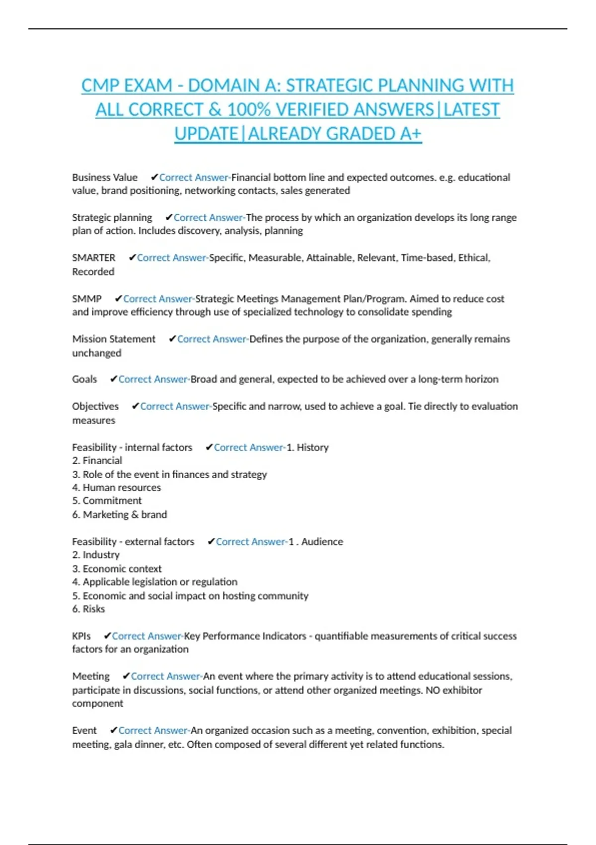 Event ✔Correct Answer-An organized occasion such as a meeting, convention, exhibition, special