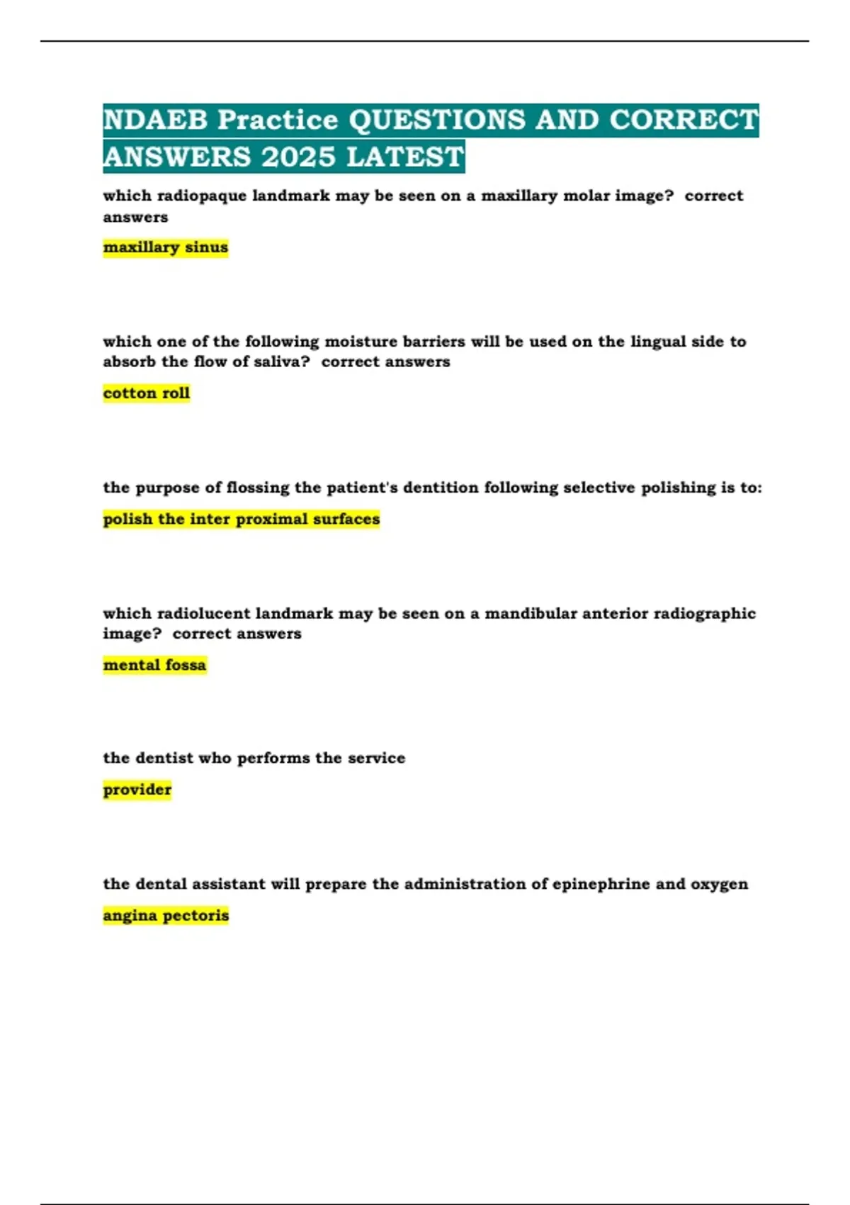 ANSWERS 2025 LATEST