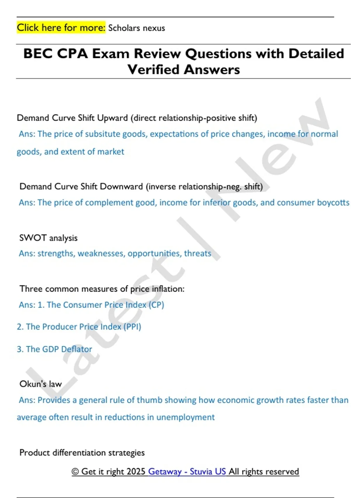 BEC CPA Exam Review Questions with Detailed Verified Answers