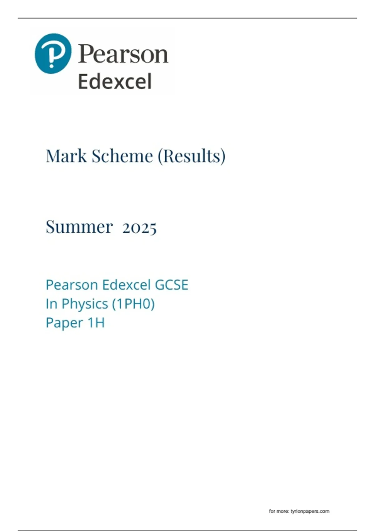 EDEXCEL GCSE TRIPLE SCIENCE PHYSICS MAY JUNE 2025 PAPER 1 HIGHER MARK SCHEME
