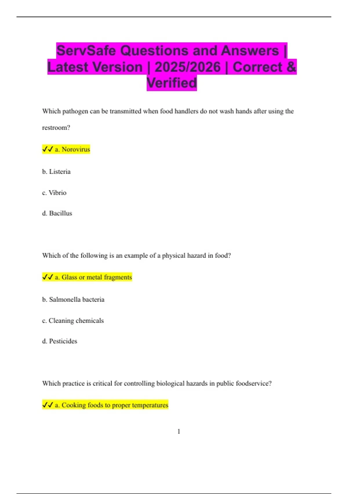 ✔✔ a. Cooking foods to proper temperatures