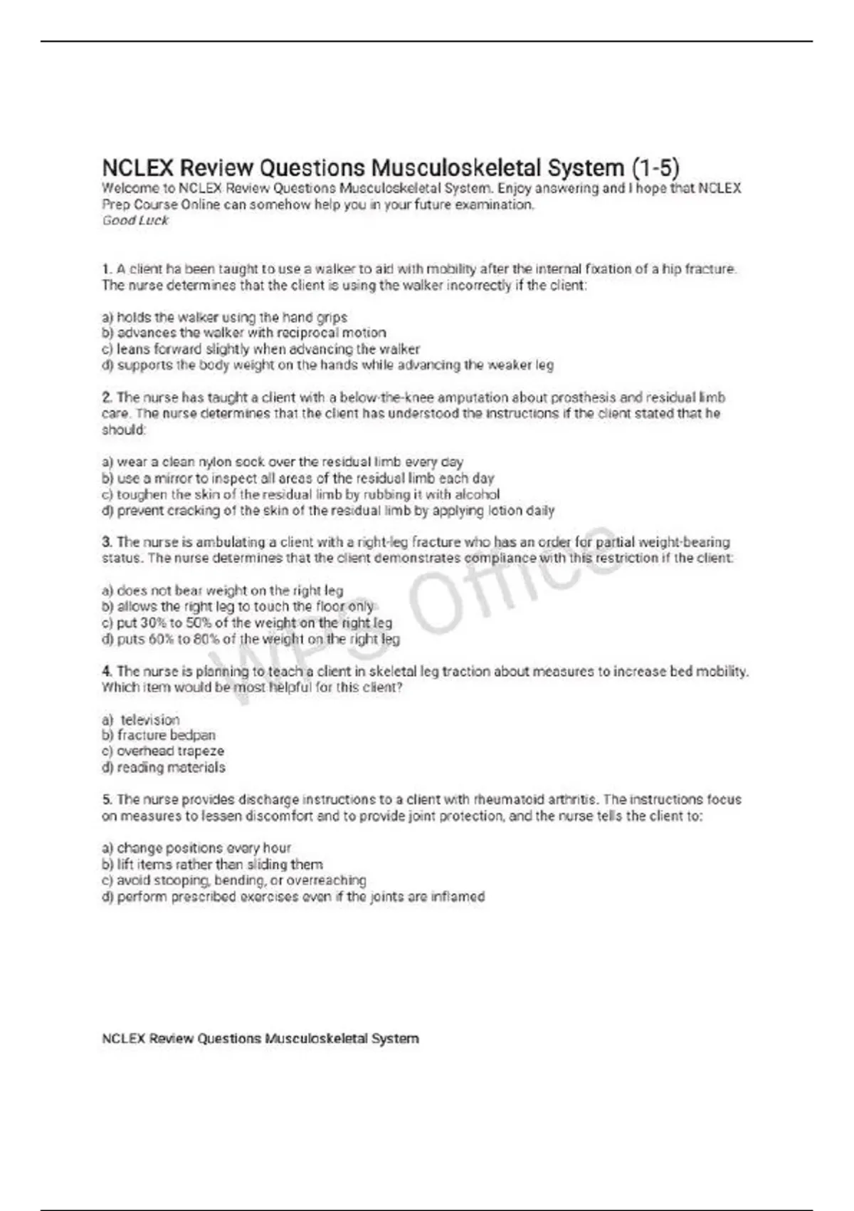 NCLEX REVIEW MUSCULOSKELETAL SYSTEM EXAM QUESTIONS AND ANSWERS