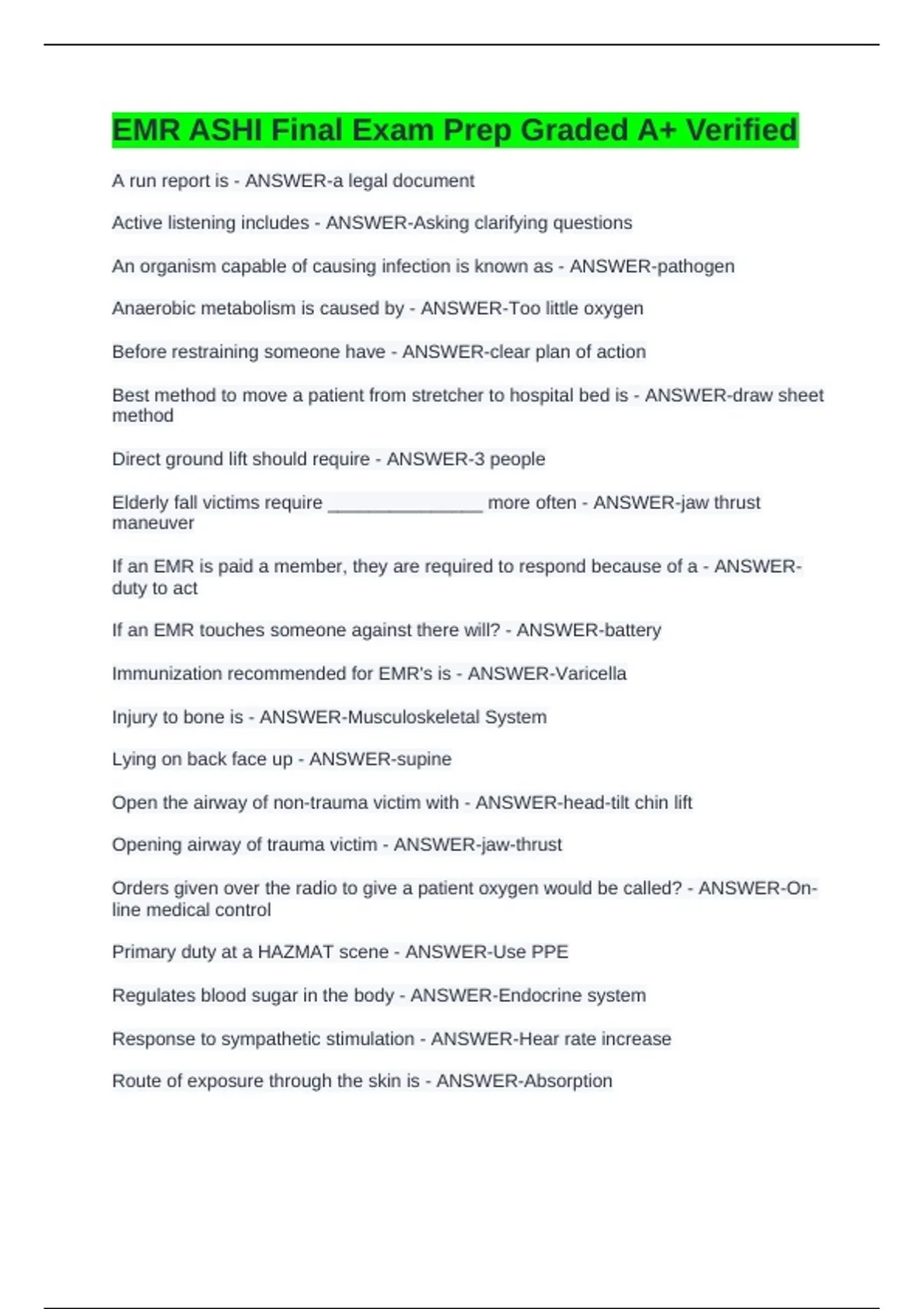 EMR ASHI Final Exam Prep Graded A+ Verified