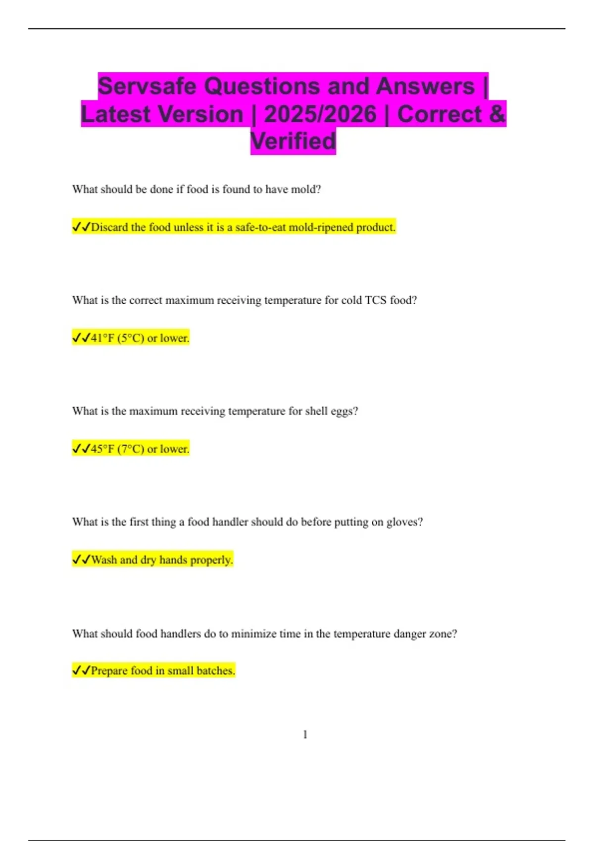 Servsafe Questions and Answers | Latest Version | 2025/2026 | Correct & Verified