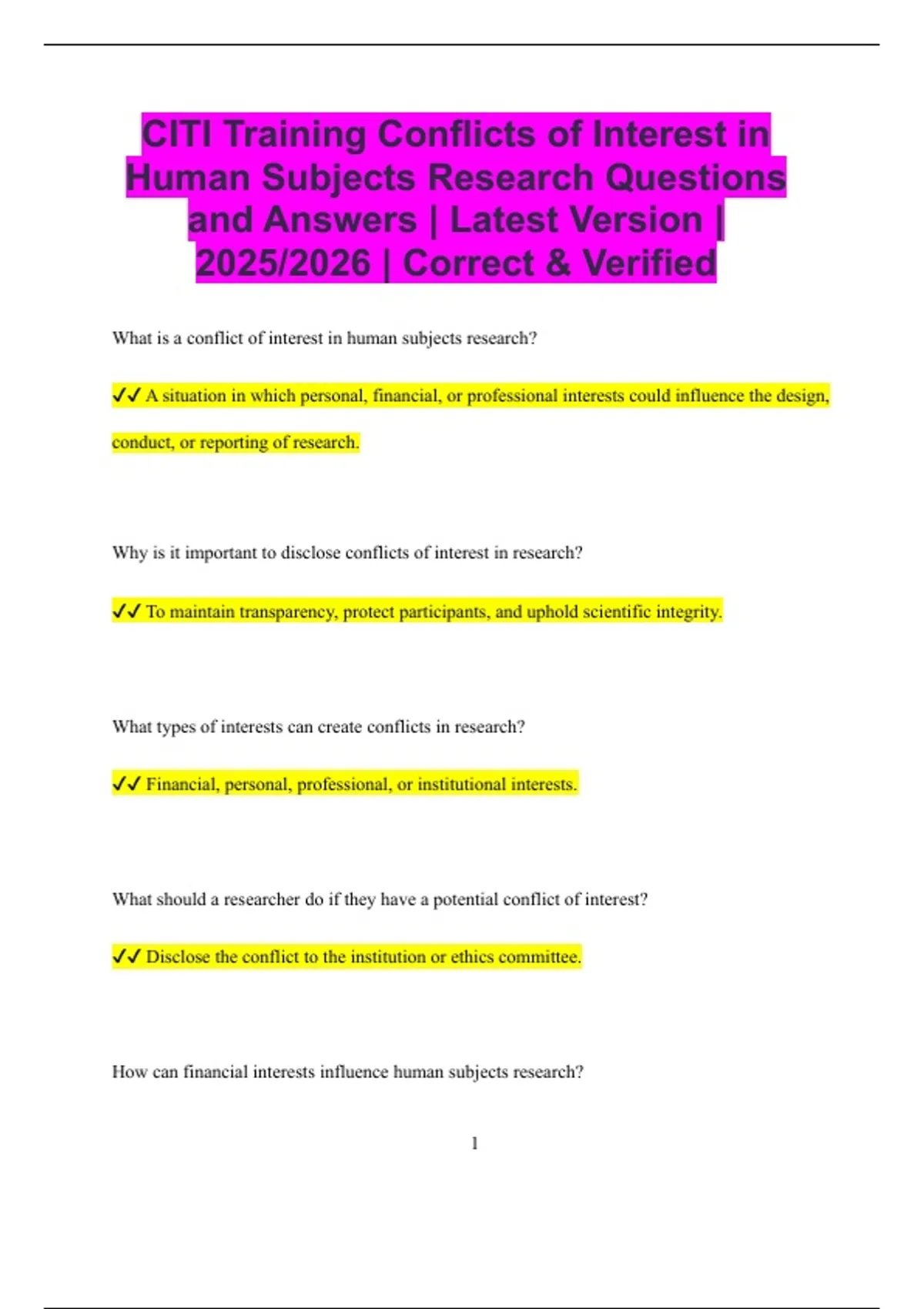 ✔✔ The IRB reviews disclosed conflicts to ensure participant safety and research integrity.