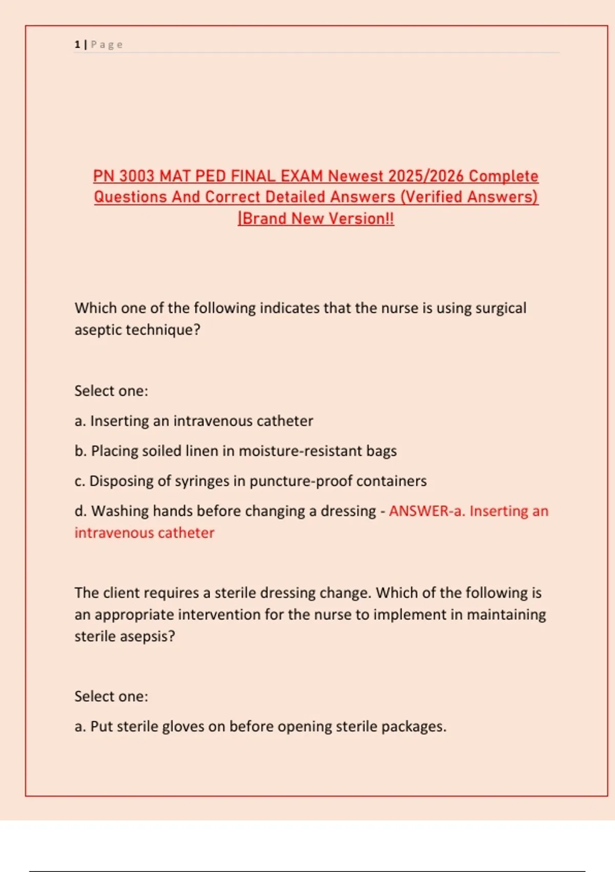 PN 3003 MAT PED FINAL EXAM Newest 2025/2026 Complete