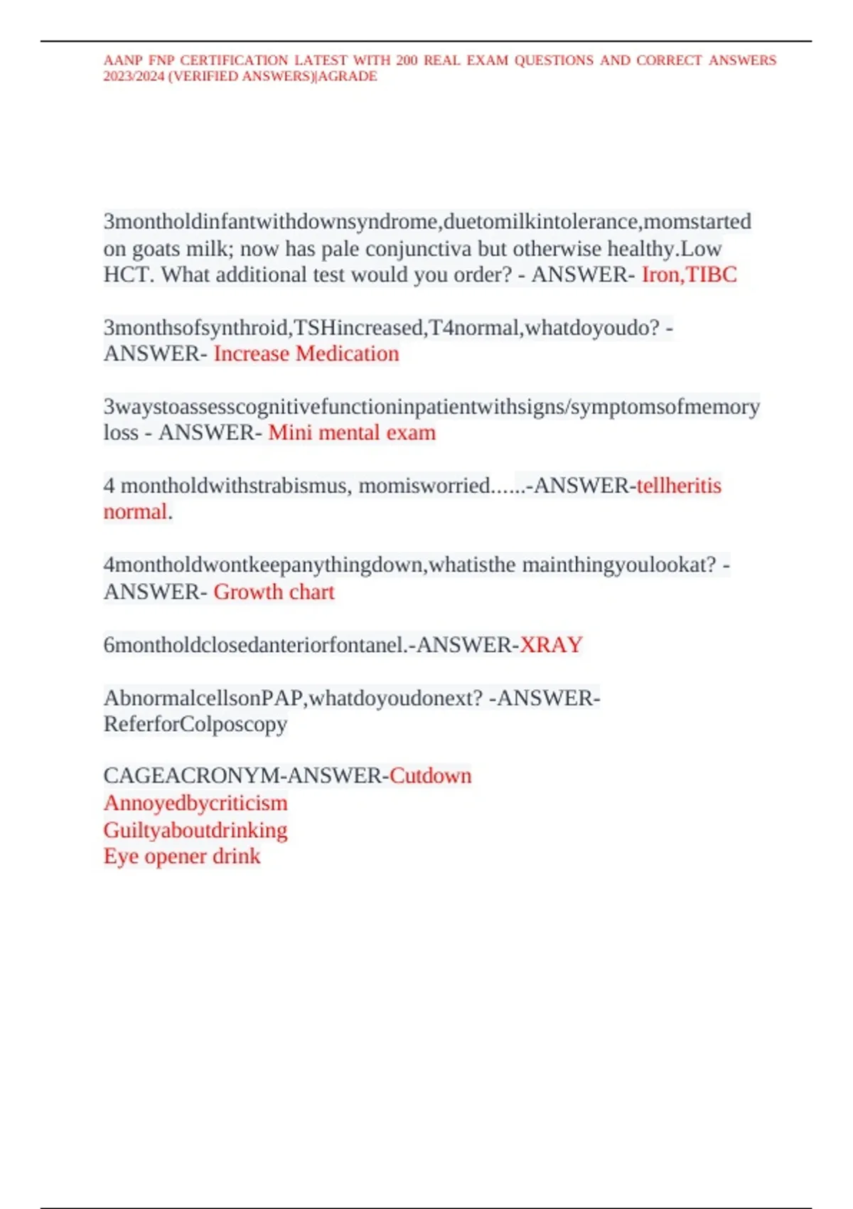 , AANP FNP CERTIFICATION LATEST WITH 200 REAL EXAM QUESTIONS AND CORRECT ANSWERS