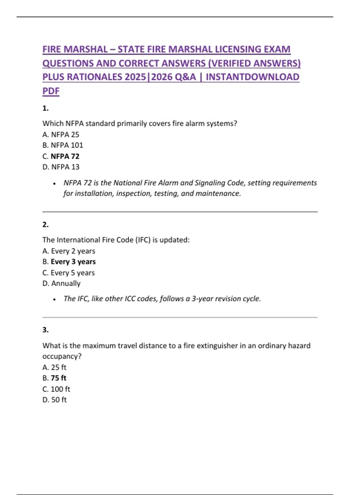 FIRE MARSHAL – STATE FIRE MARSHAL LICENSING EXAM QUESTIONS AND CORRECT ANSWERS (VERIFIED ANSWERS) PLUS RATIONALES 2025|2026 Q&A | INSTANTDOWNLOAD PDF