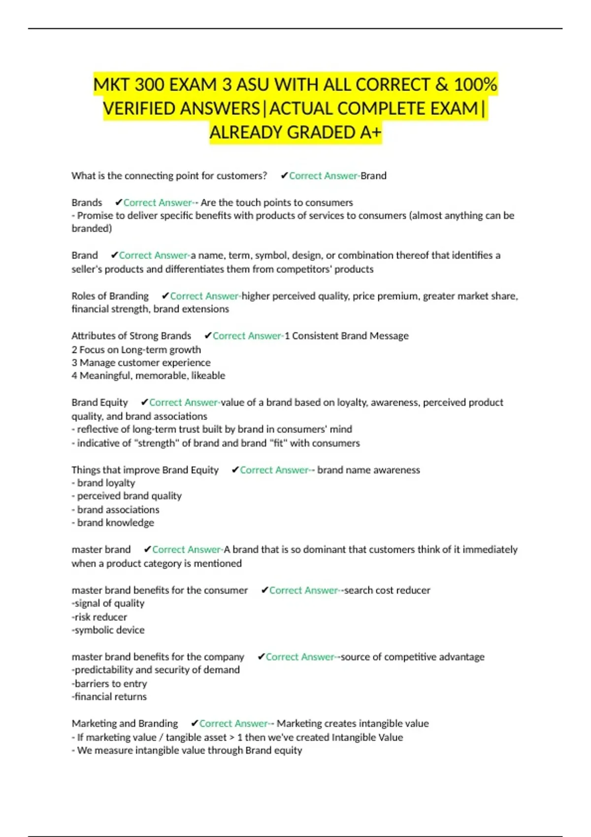 Marketing and Branding ✔Correct Answer-- Marketing creates intangible value