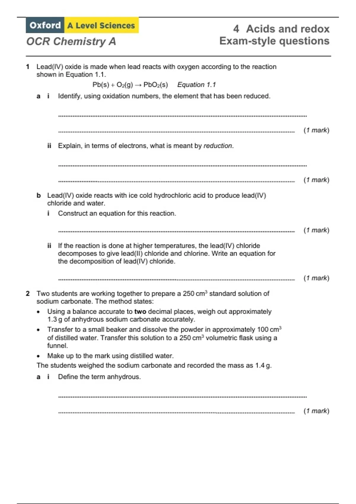 OCR A Chemistry - Acids and Redox Exam Style Questions