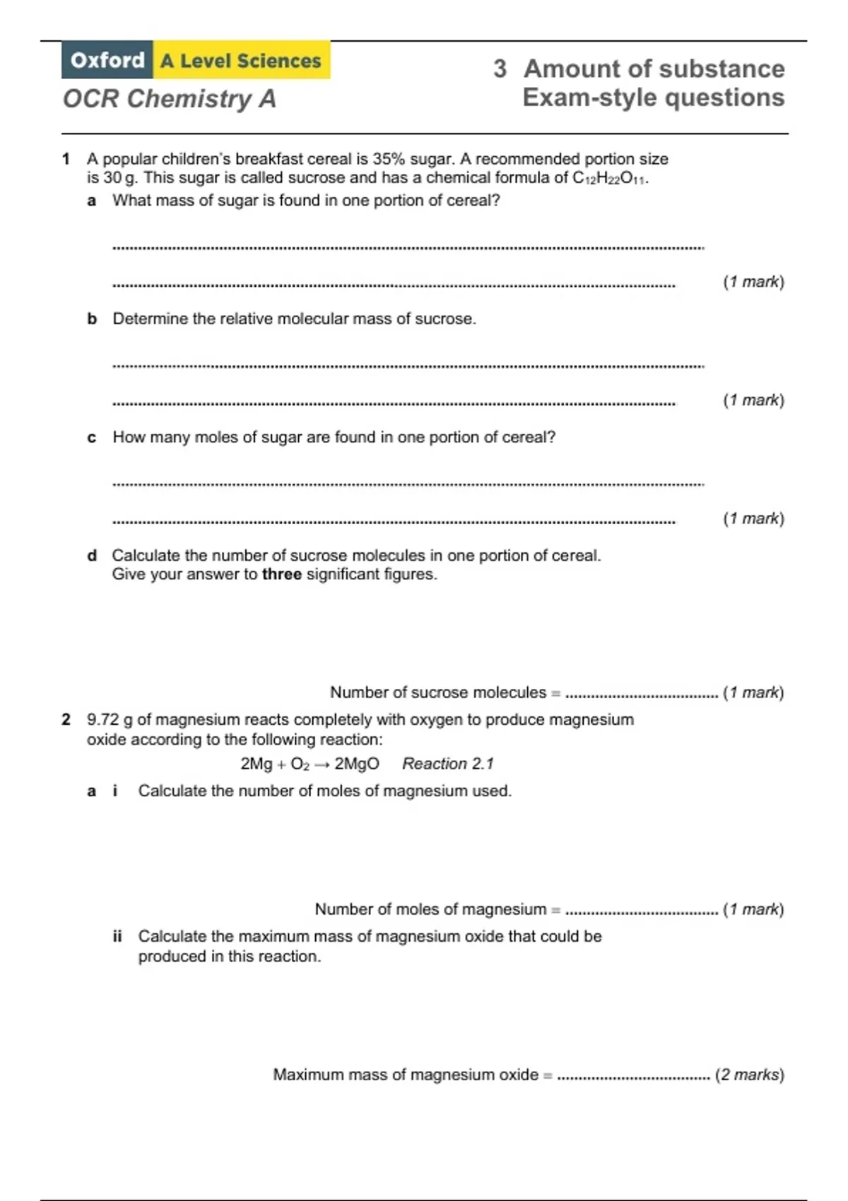 OCR Chemistry A Exam-style questions