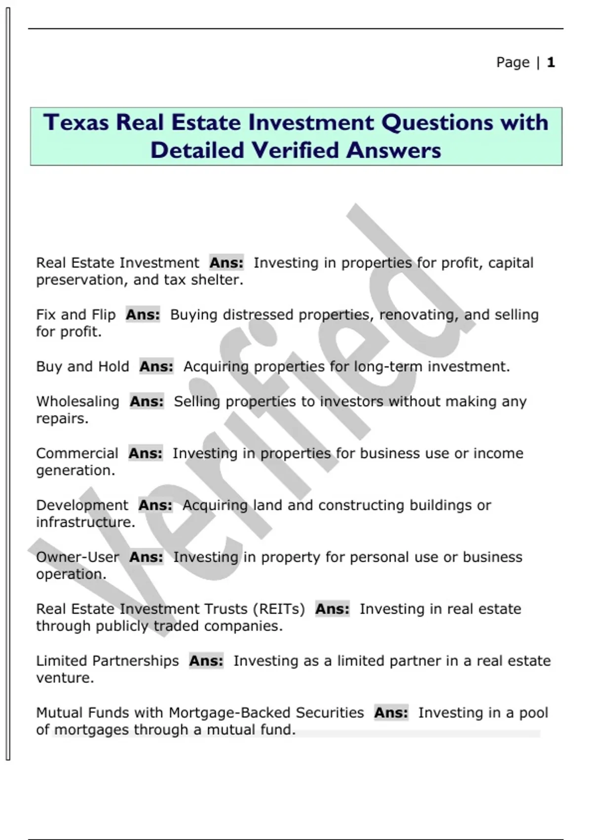 Texas Real Estate Investment Questions with Detailed Verified Answers
