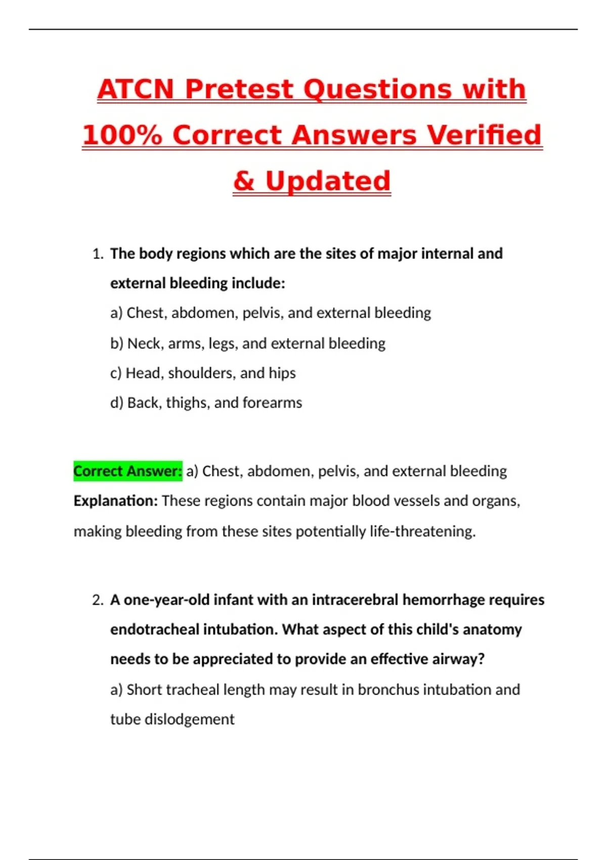 Correct Answer: a) Chest, abdomen, pelvis, and external bleeding