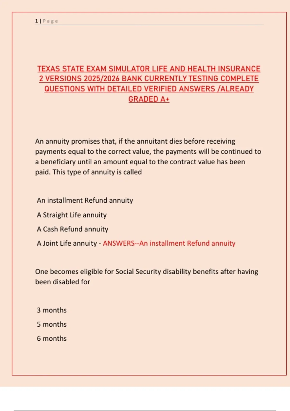 TEXAS STATE EXAM SIMULATOR LIFE AND HEALTH INSURANCE 2 VERSIONS 2025/2026 BANK CURRENTLY TESTING COMPLETE QUESTIONS WITH DETAILED VERIFIED ANSWERS /ALREADY GRADED A+