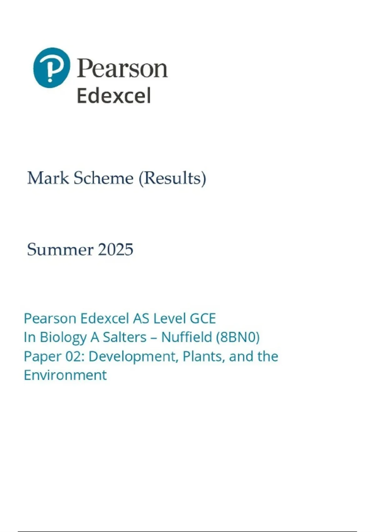 ACTUAL AS-LEVEL EDEXCEL BIOLOGY A 2025 PAPER 2 MARK SCHEME