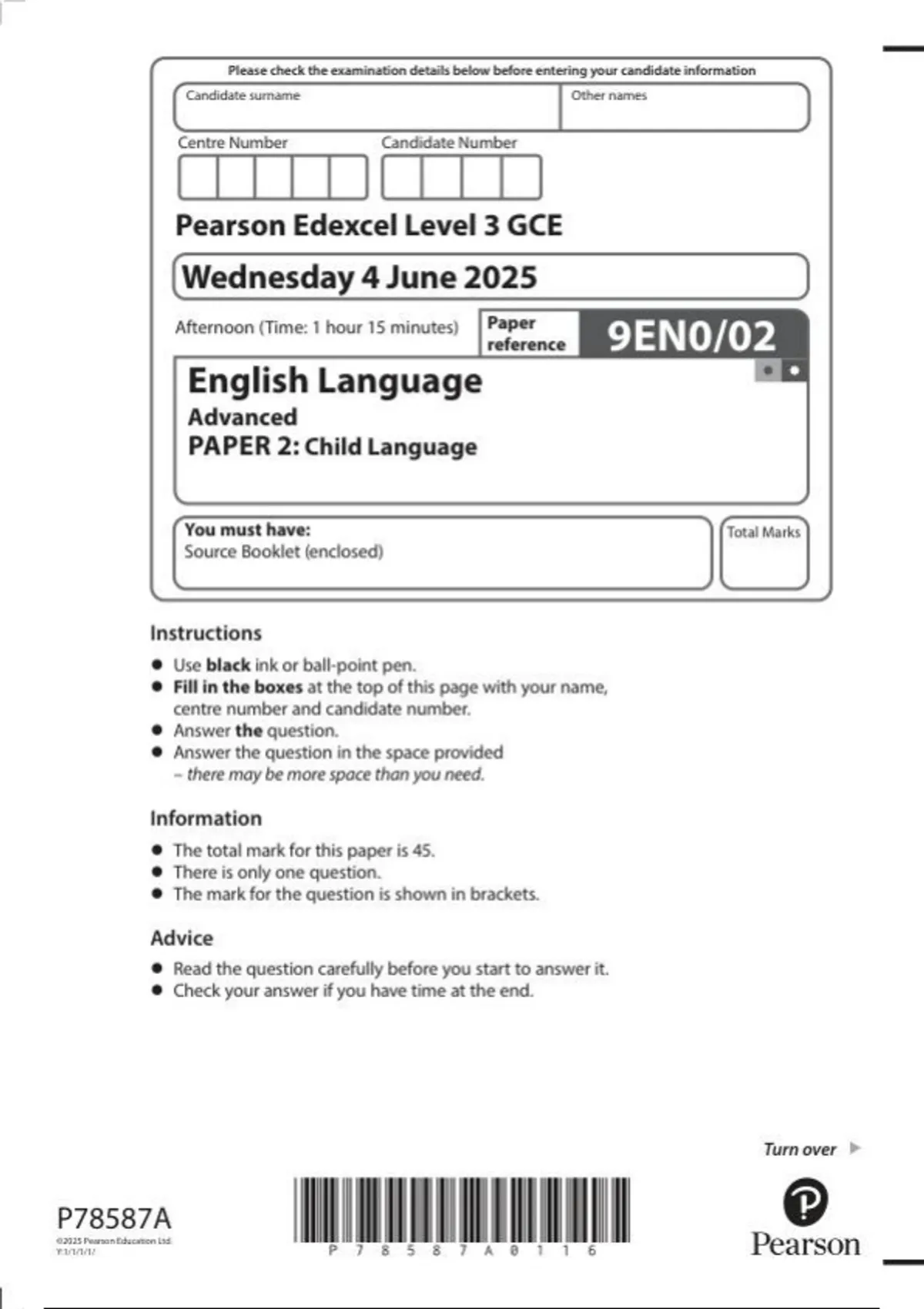Pearson Edexcel a level English Language |question paper |2025|9EN0/02|