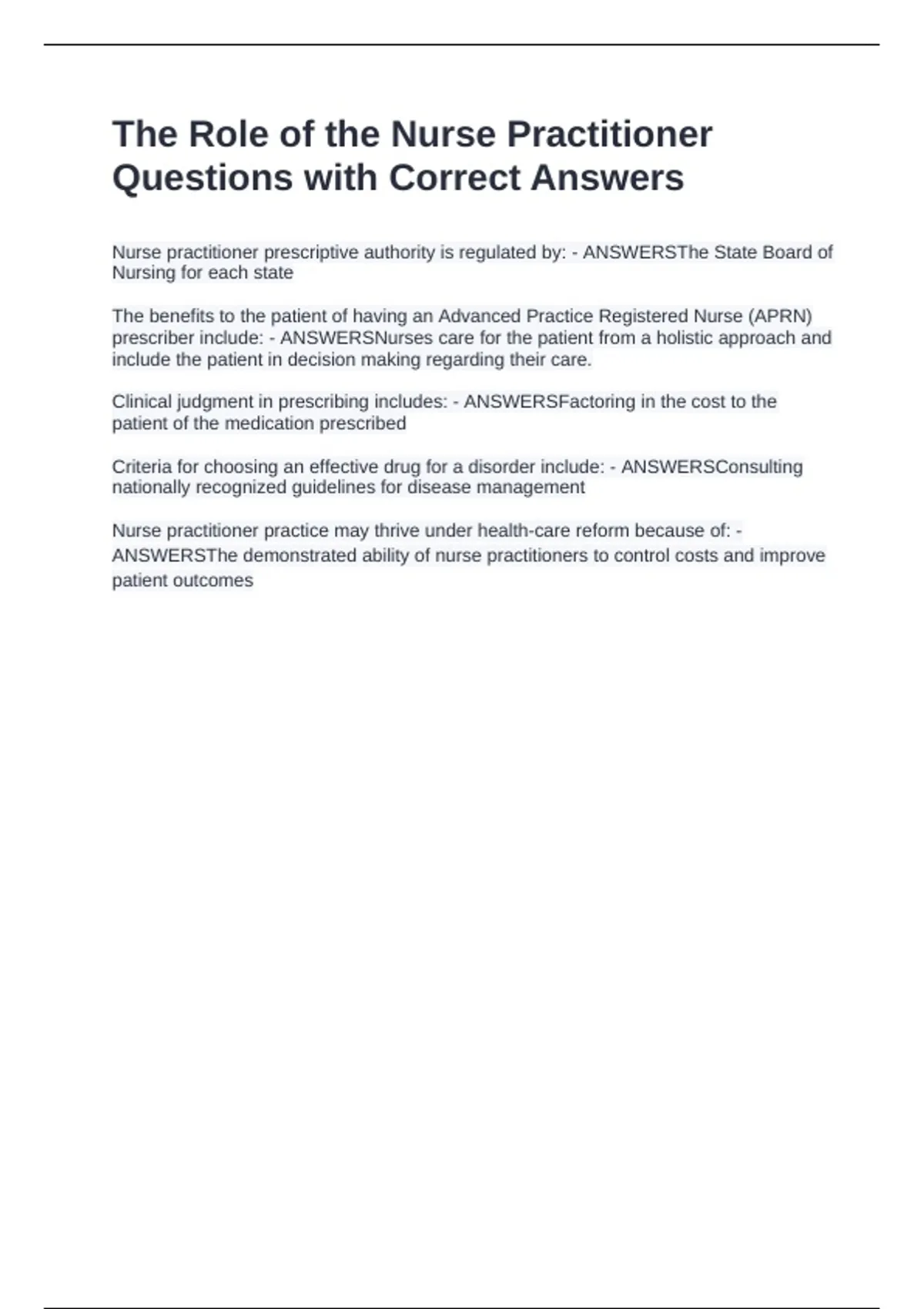 ANSWERSThe demonstrated ability of nurse practitioners to control costs and improve