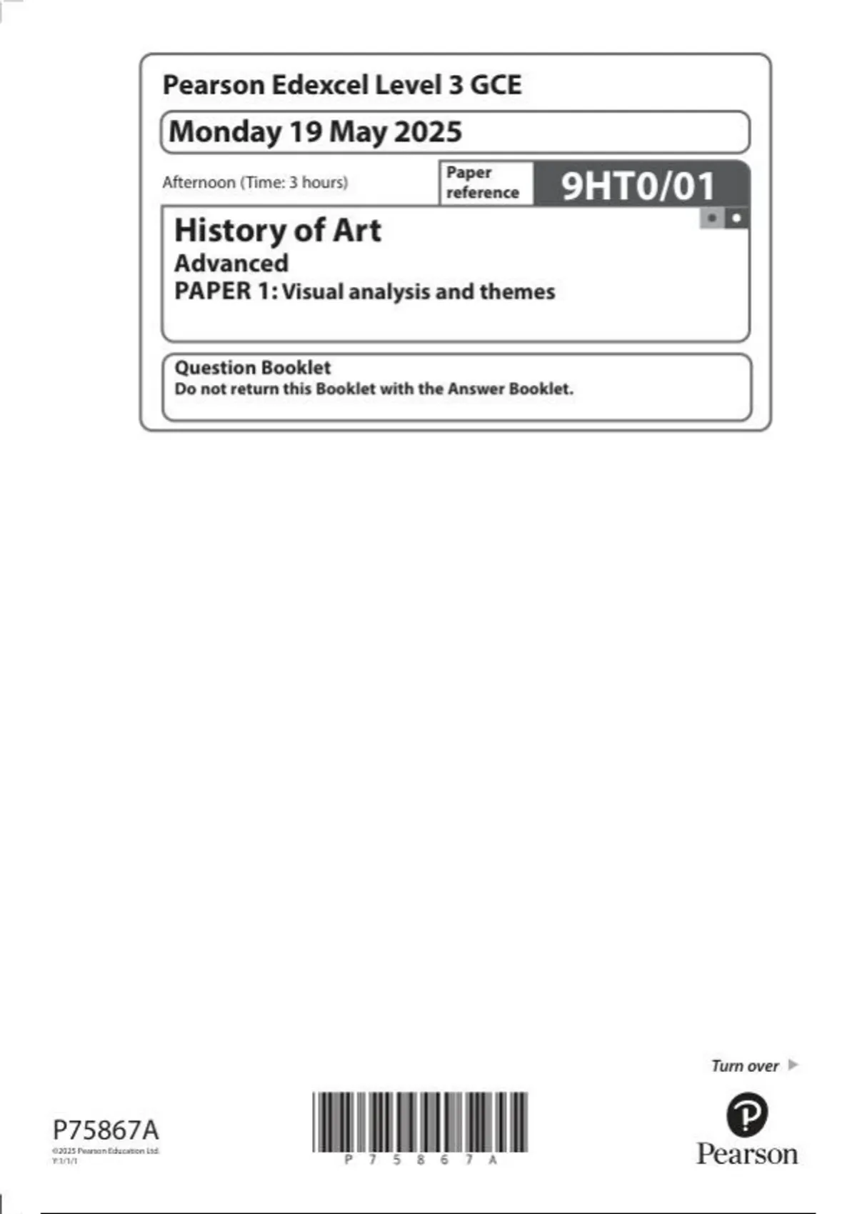 Pearson Edexcel Level 3 GCE History of Art Advanced Paper reference 9HT0/01 PAPER 1: Visual analysis and themes June 2025