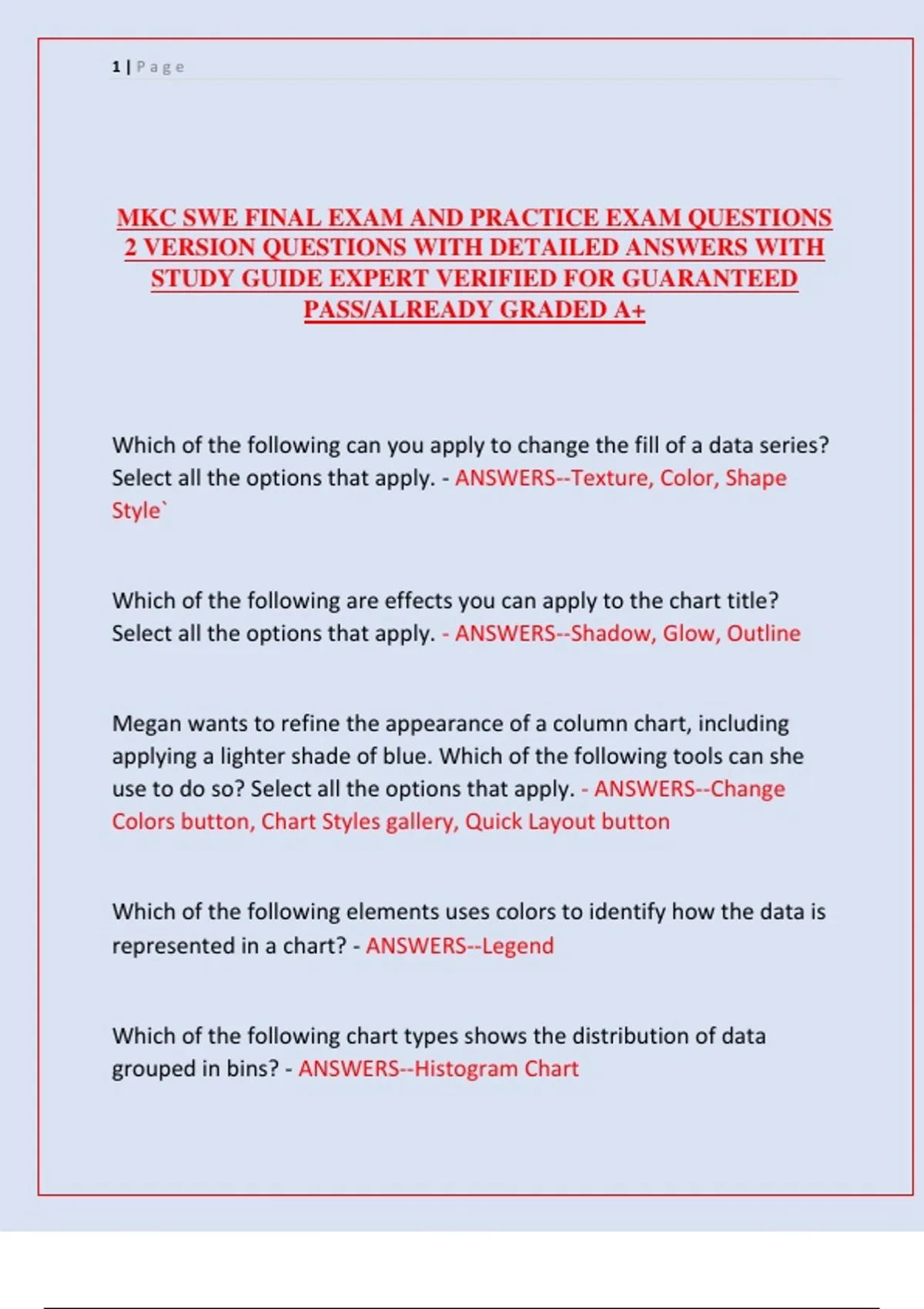 MKC SWE FINAL EXAM AND PRACTICE EXAM QUESTIONS
