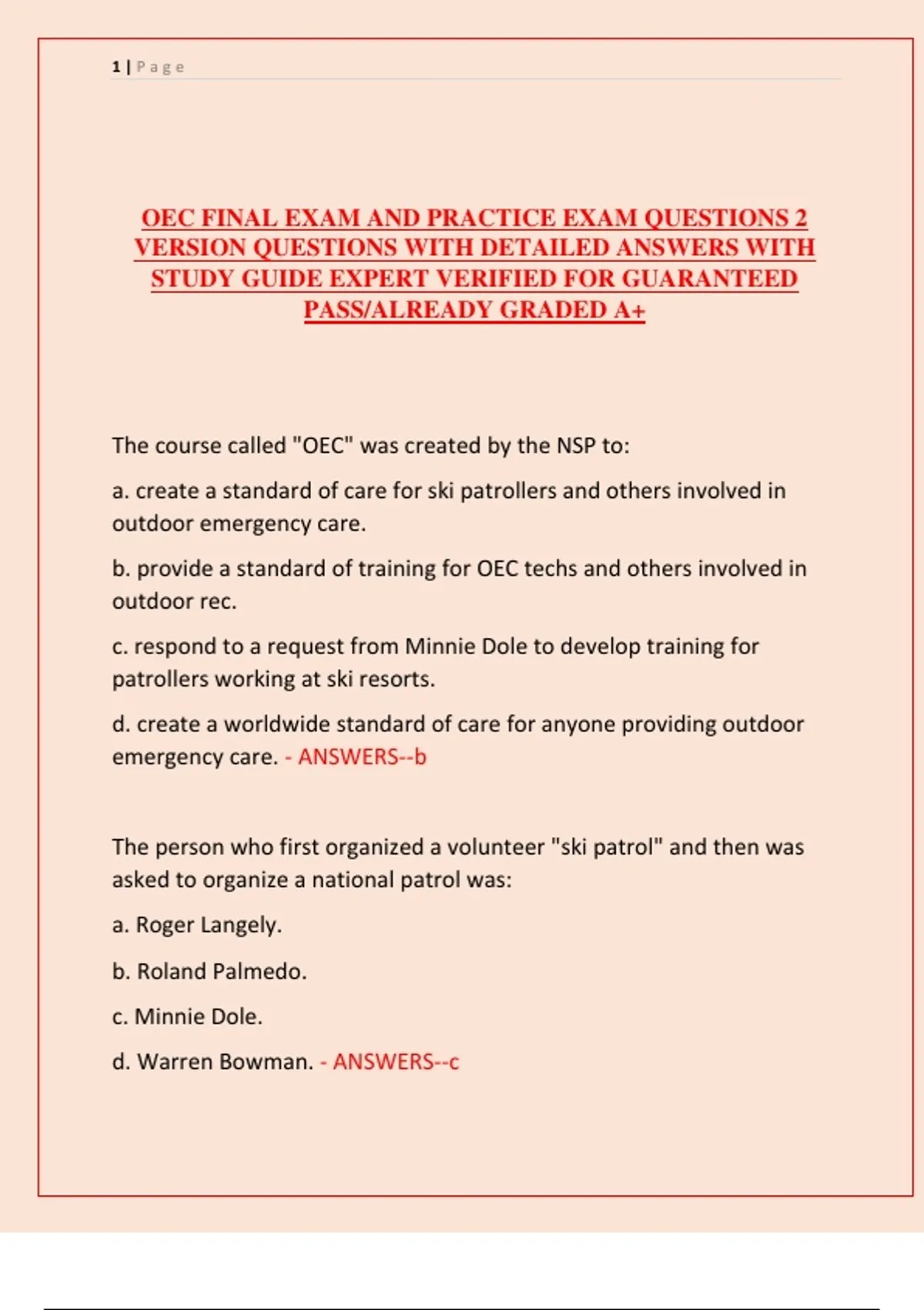 OEC FINAL EXAM AND PRACTICE EXAM QUESTIONS 2