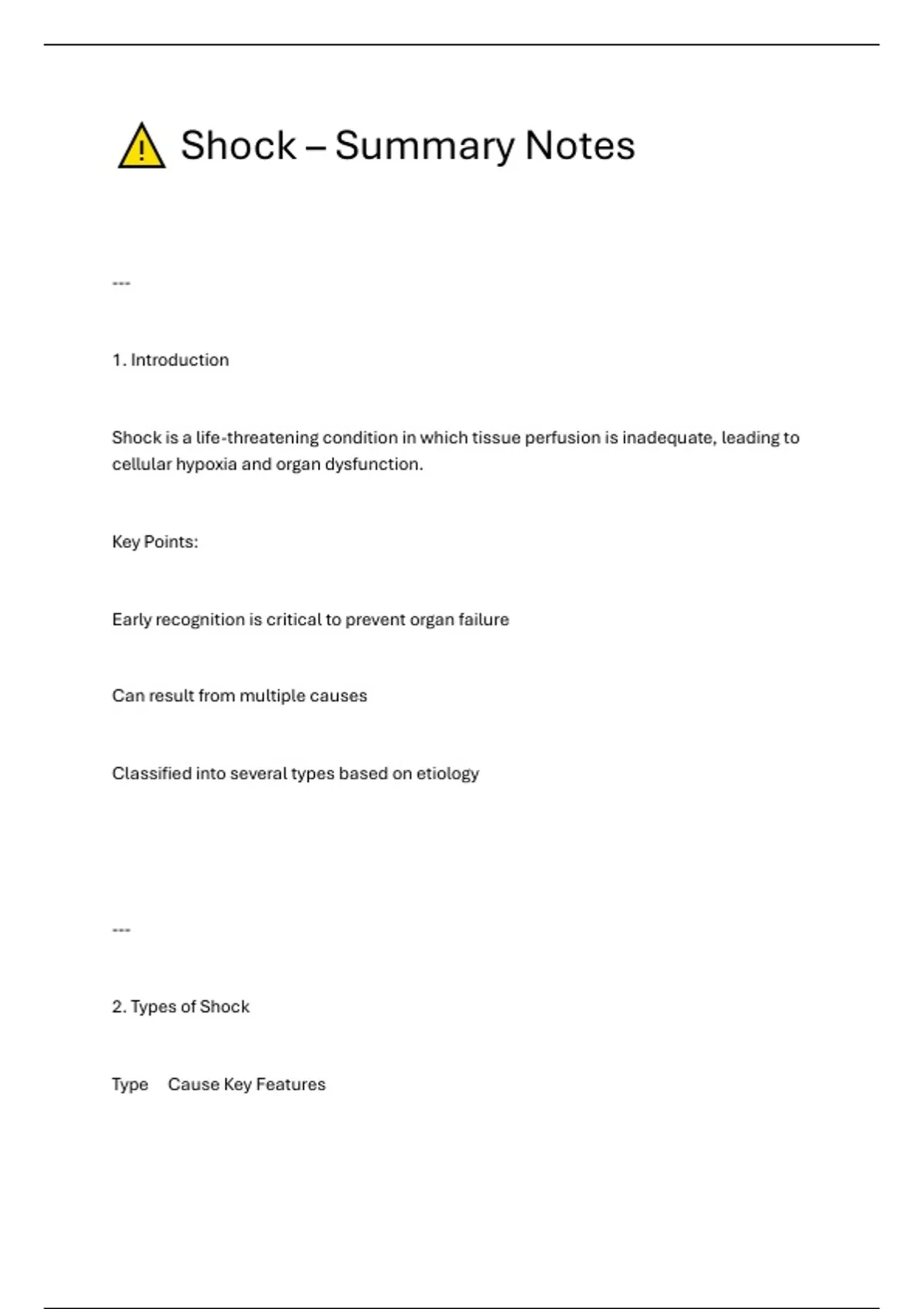 Shock is a life-threatening condition in which tissue perfusion is inadequate, leading to