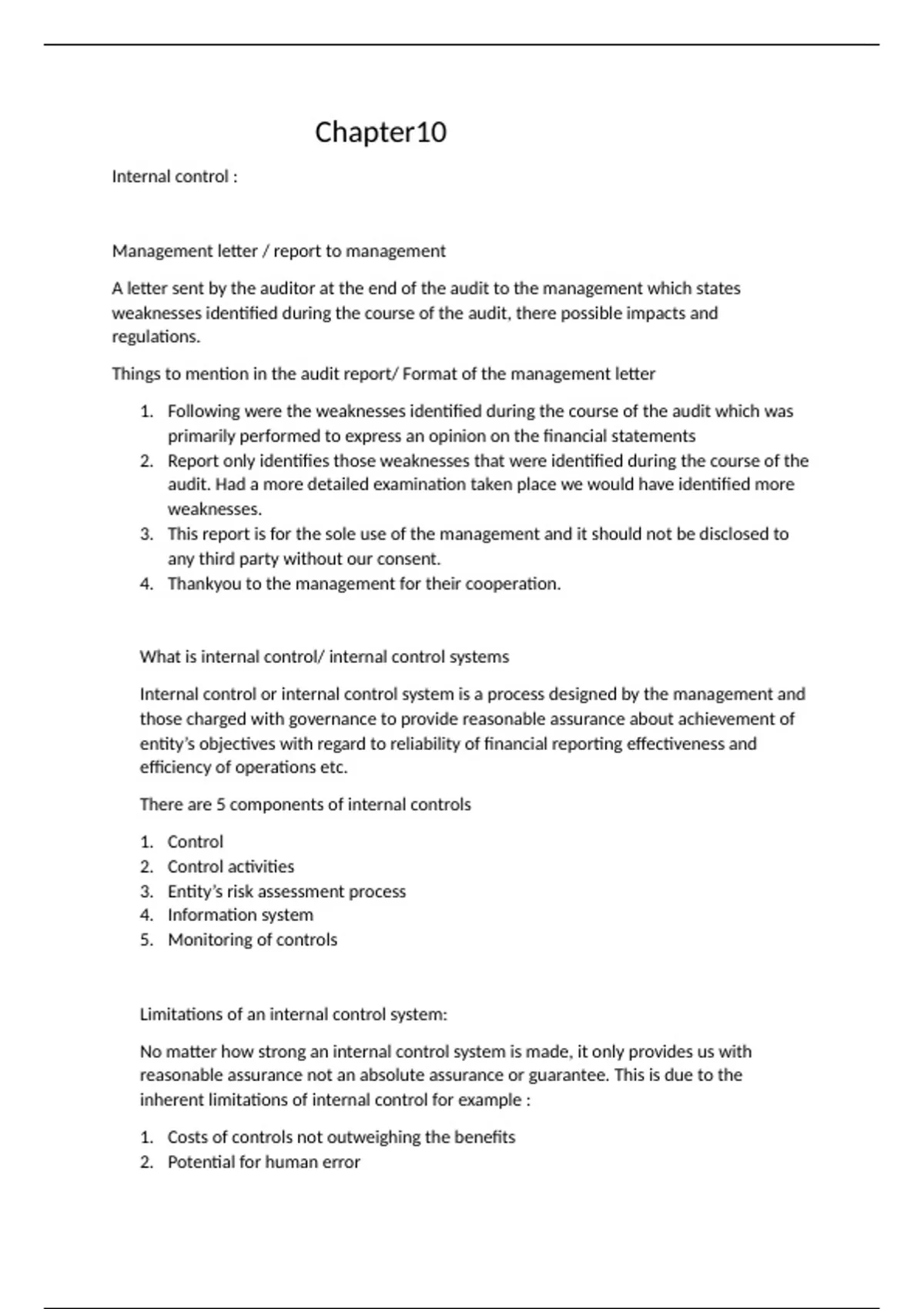 Limitations of an internal control system: