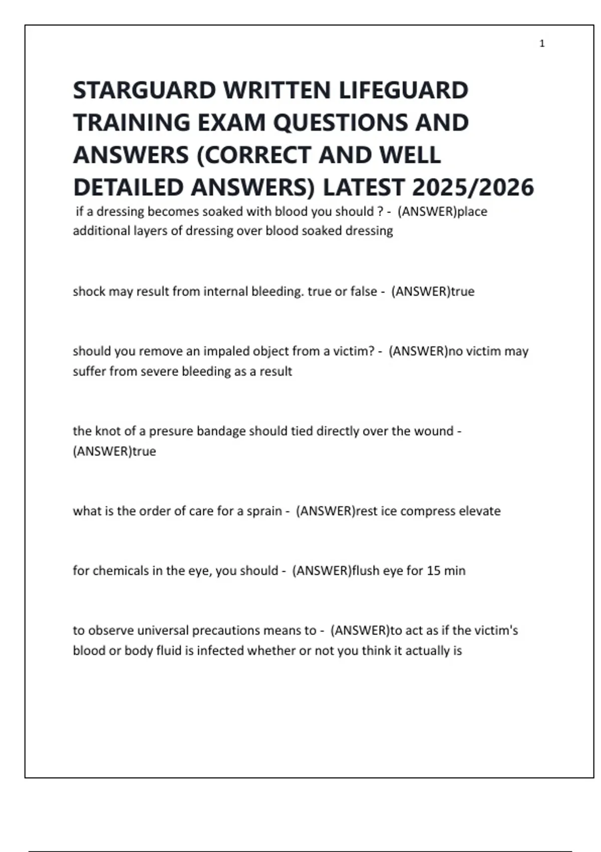 STARGUARD WRITTEN LIFEGUARD TRAINING EXAM QUESTIONS AND ANSWERS (CORRECT AND WELL DETAILED ANSWERS) LATEST 2025/2026