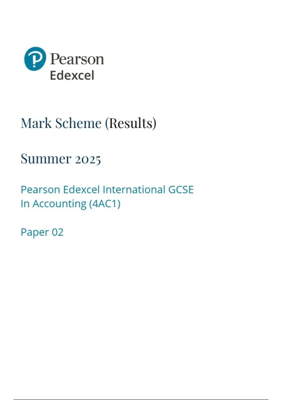 Pearson Edexcel International GCSE In Accounting (4AC1) Paper 02 marking scheme June 2025