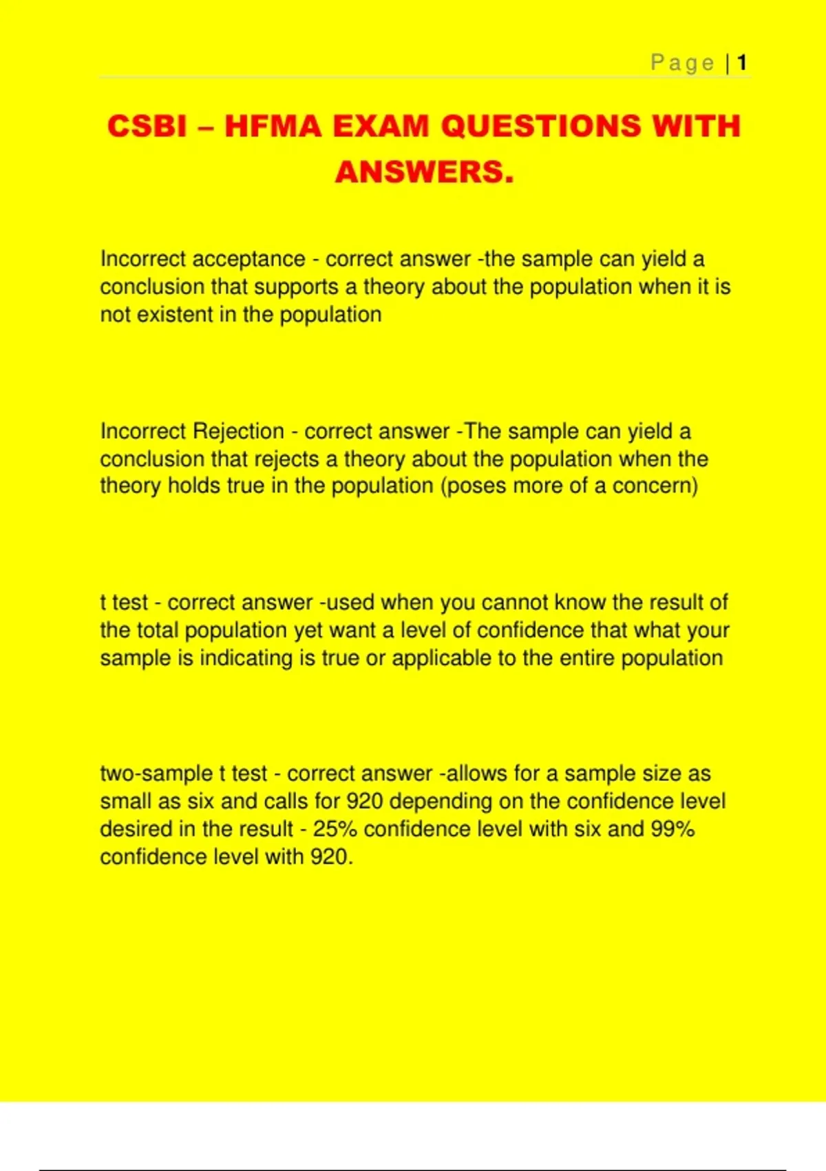 CSBI – HFMA EXAM QUESTIONS WITH ANSWERS.