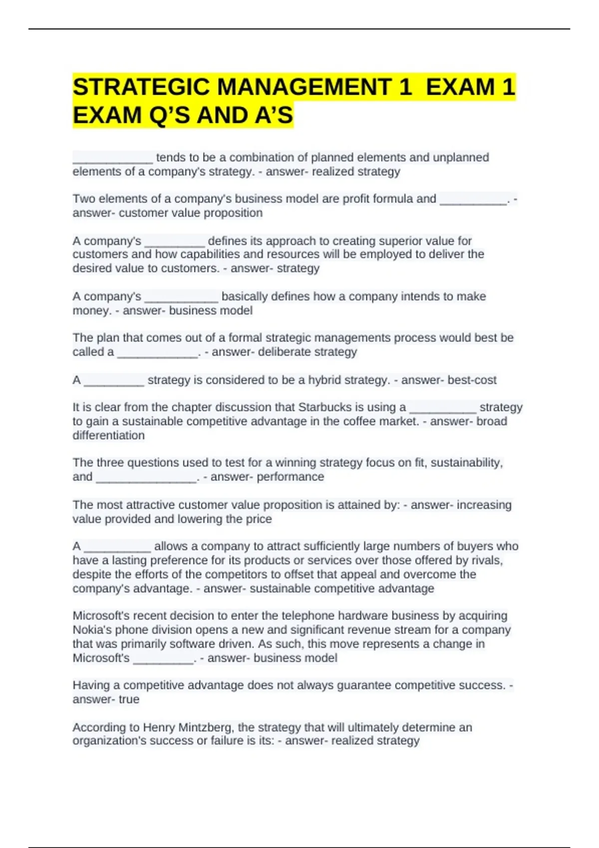STRATEGIC MANAGEMENT 1 EXAM 1 EXAM Q’S AND A’S