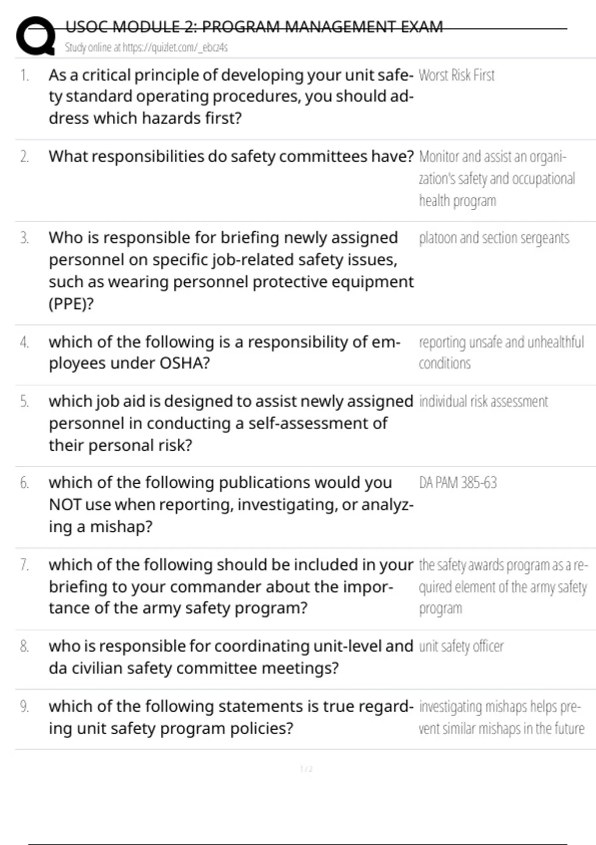 USOC MODULE 2: PROGRAM MANAGEMENT EXAM