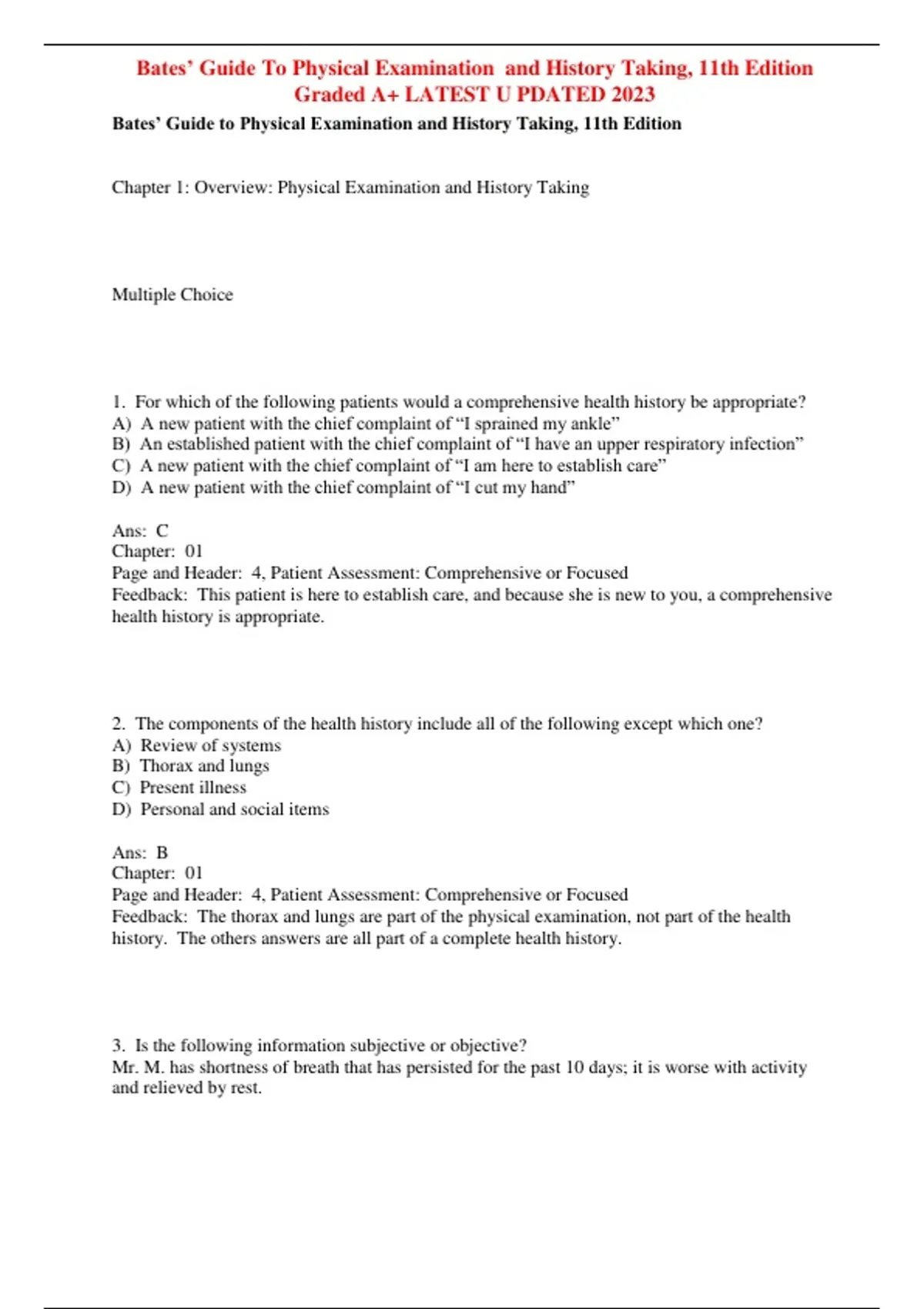 Bates’ Guide To Physical Examination and History Taking, 11th Edition Graded A+ LATEST U PDATED 1. Document information
