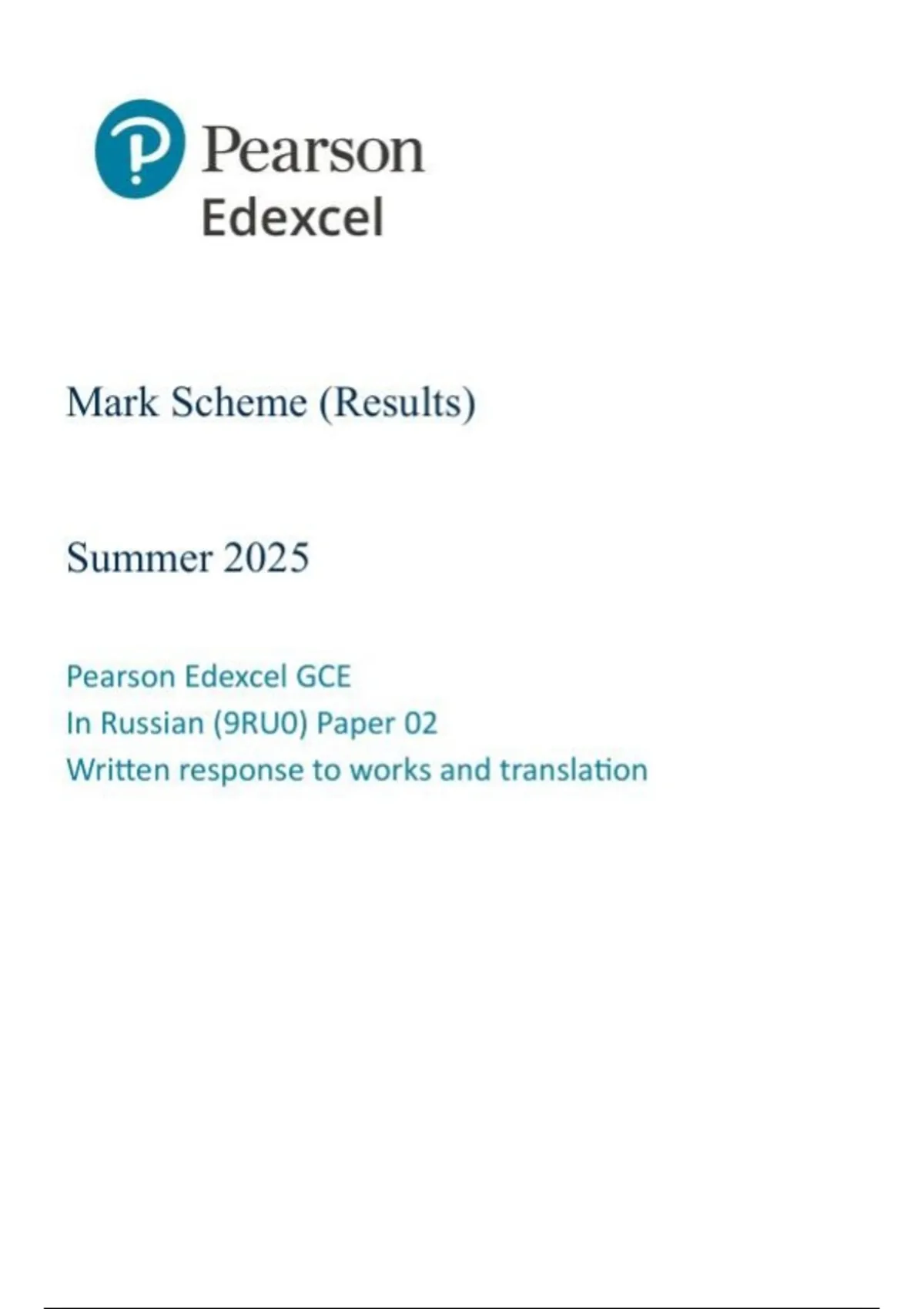 Pearson Edexcel a level Russian |final mark scheme|2025|9RU0/02|