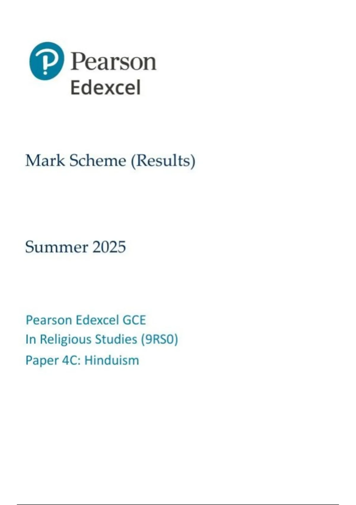 Pearson Edexcel a level Religious Studies |final mark scheme |2025|9RS0/4c|