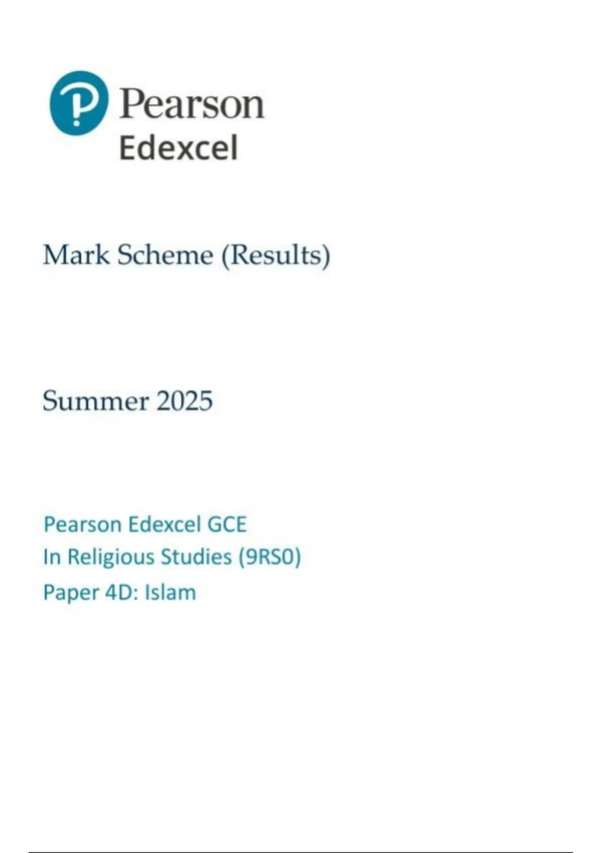 Pearson Edexcel a level Religious Studies |final mark scheme |2025|9RS0/4d|