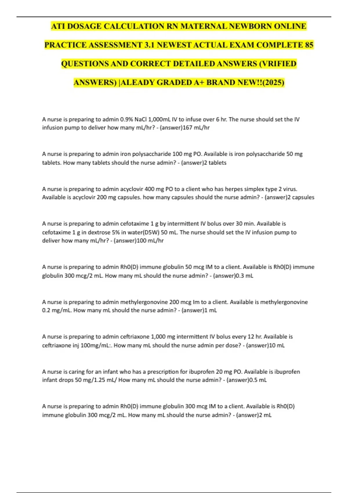 QUESTIONS AND CORRECT DETAILED ANSWERS (VRIFIED