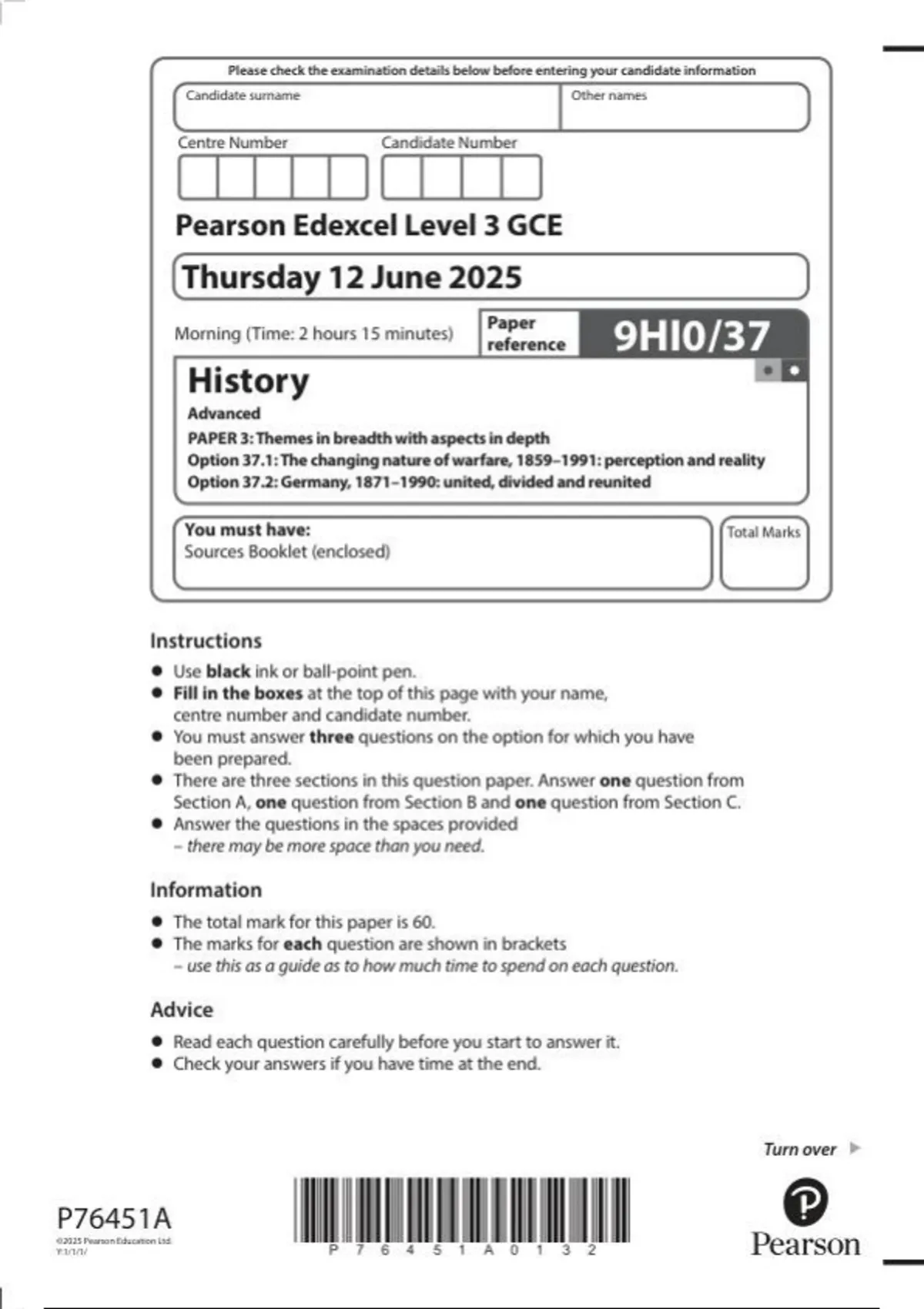 Pearson Edexcel a level History |question paper|2025|9HI0/37|