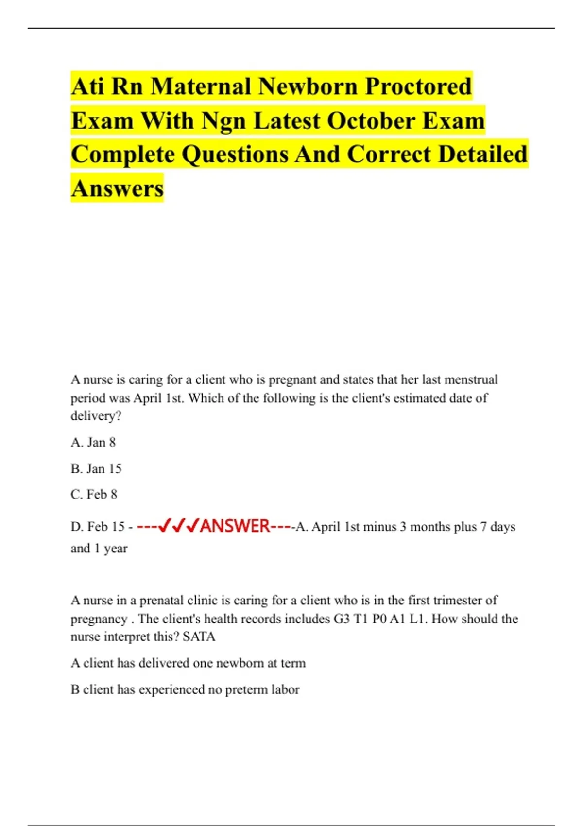 period was April 1st. Which of the following is the client's estimated date of