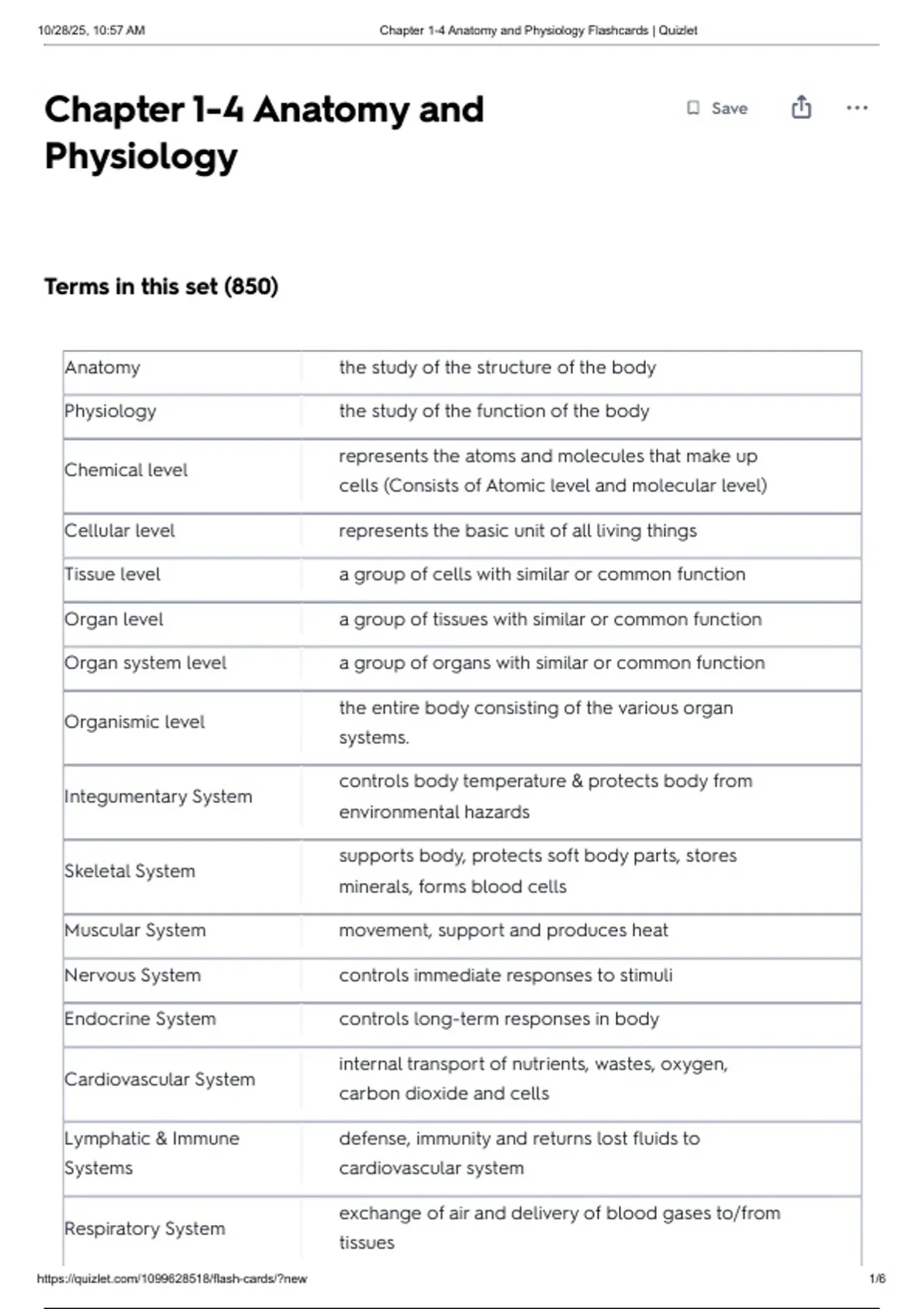 , 10/28/25, 10:57 AM Chapter 1-4 Anatomy and Physiology Flashcards | Quizlet