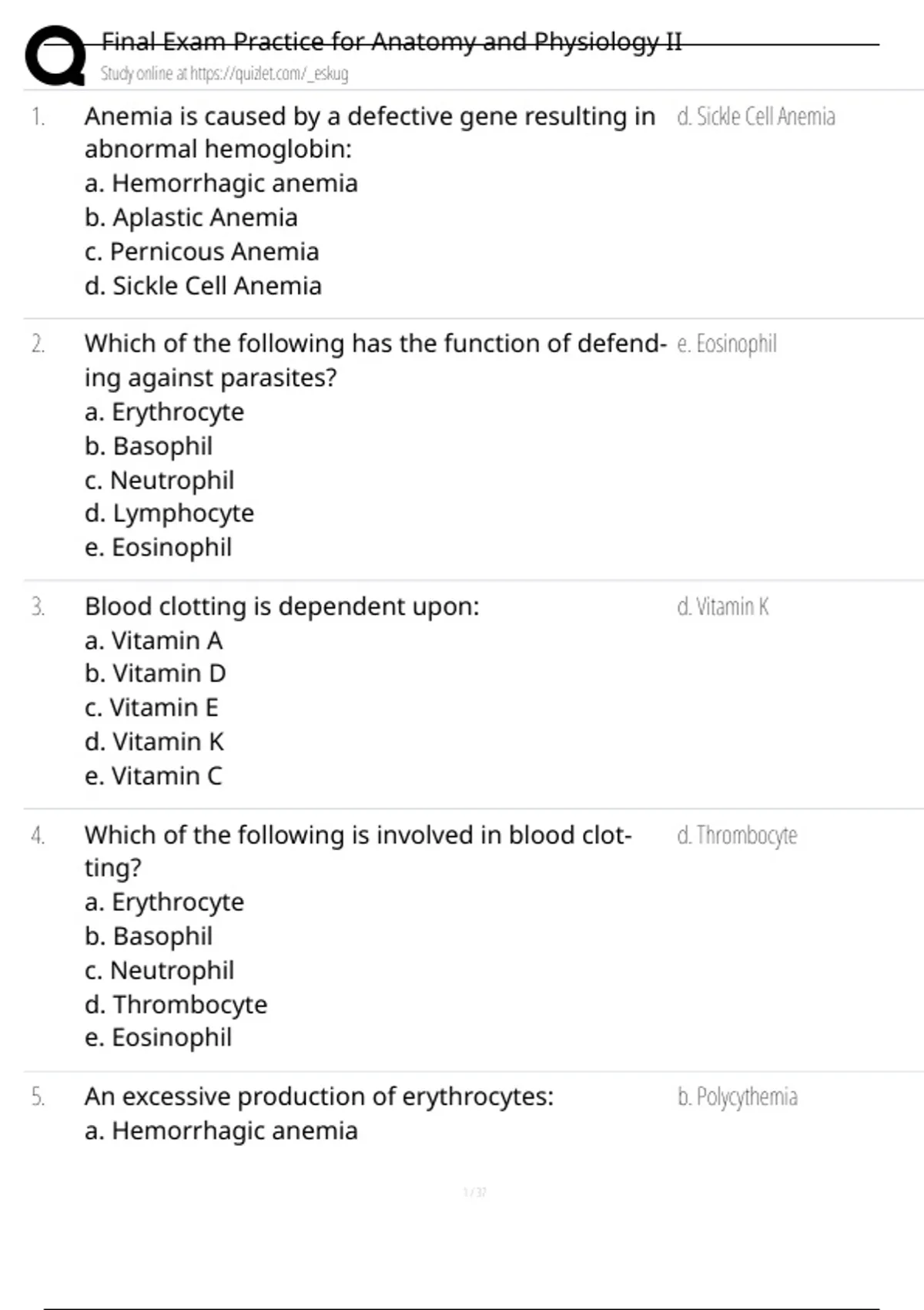 1. Anemia is caused by a defective gene resulting in d. Sickle Cell Anemia