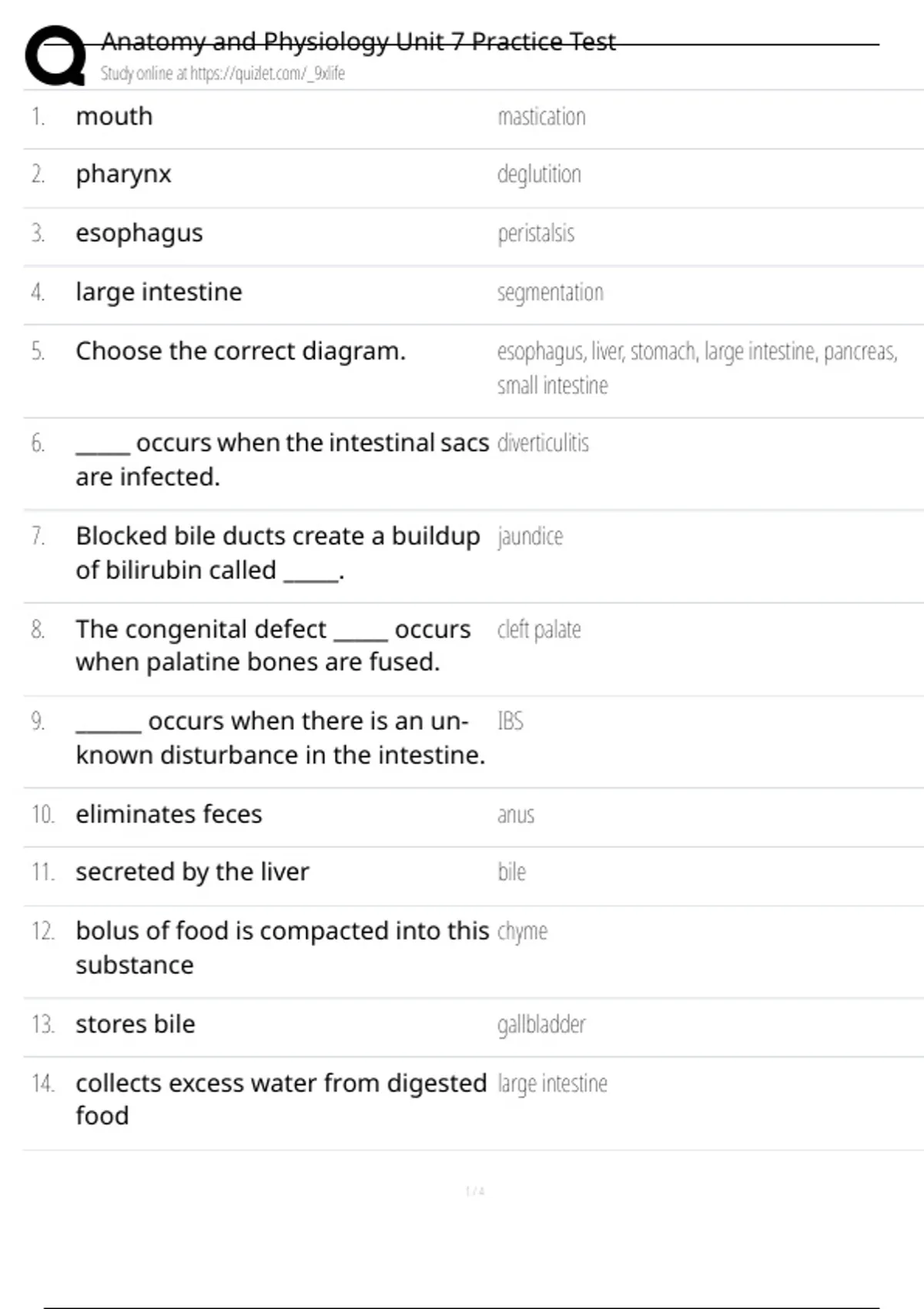 14. collects excess water from digested large intestine