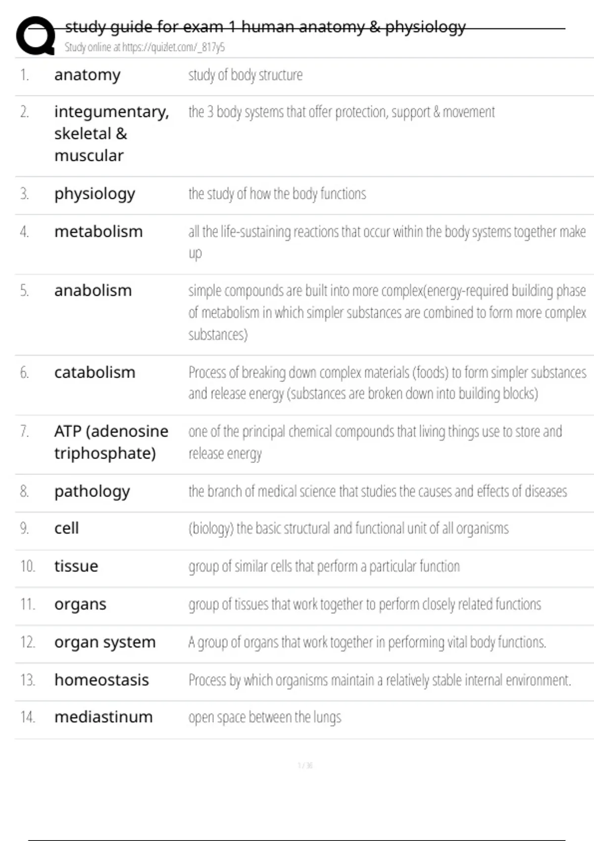 , study guide for exam 1 human anatomy & physiology