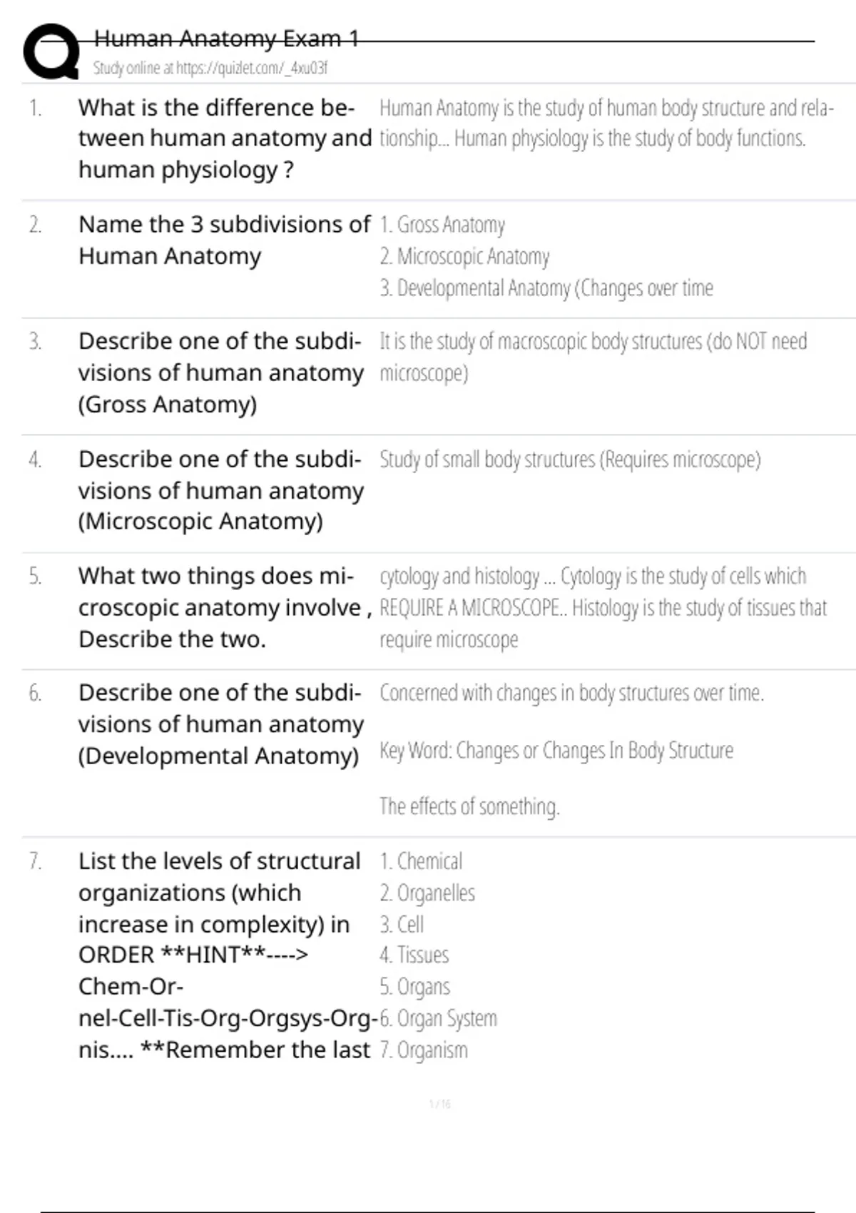 Human Anatomy Exam 1 Questions and Answers