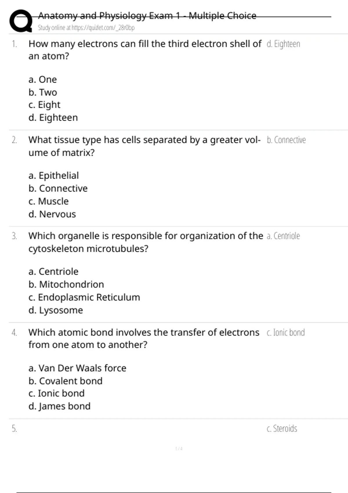 Anatomy and Physiology Exam 1 - Multiple Choice