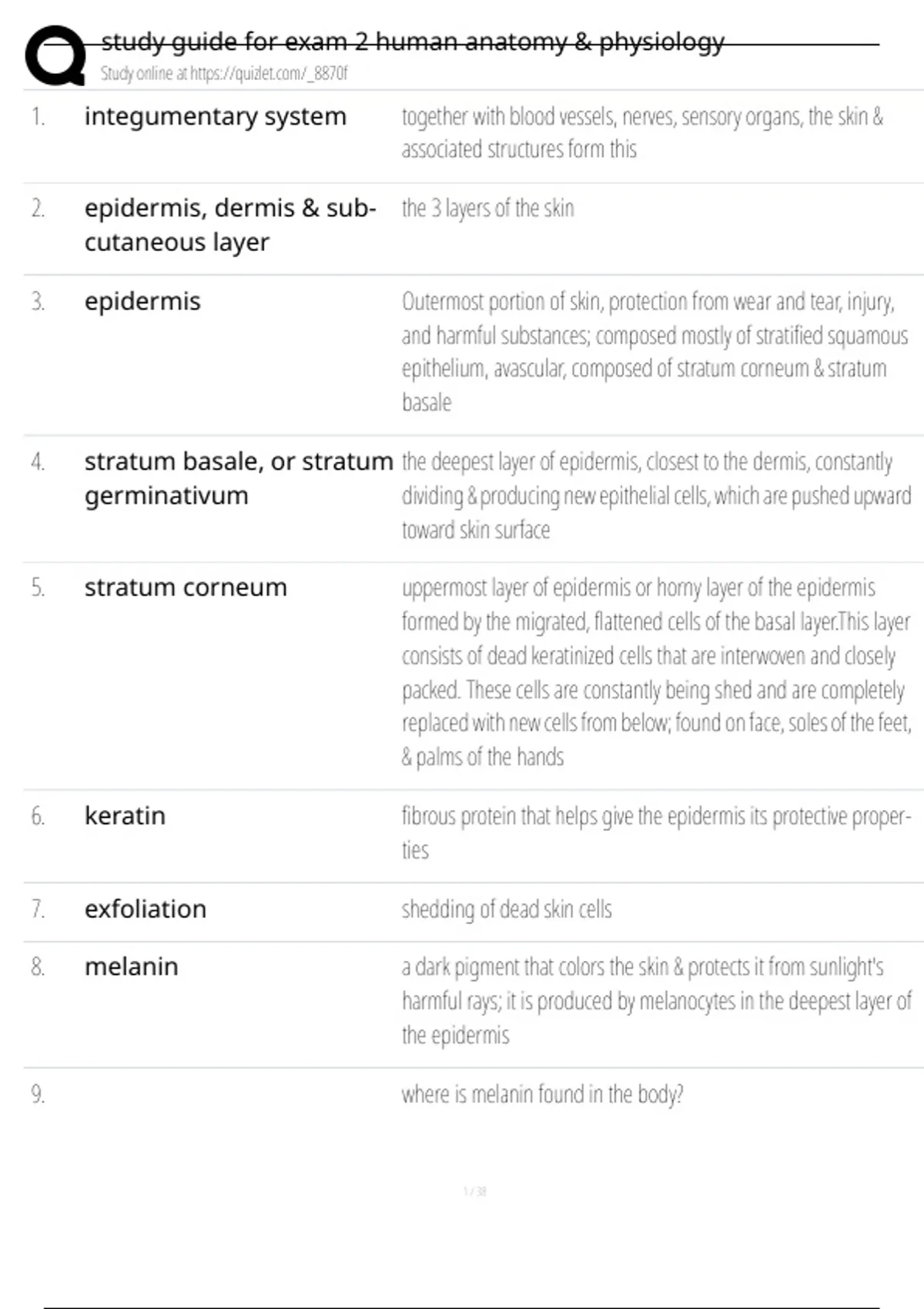 31. integumentary system What is the name of the system that comprises the skin & all of its