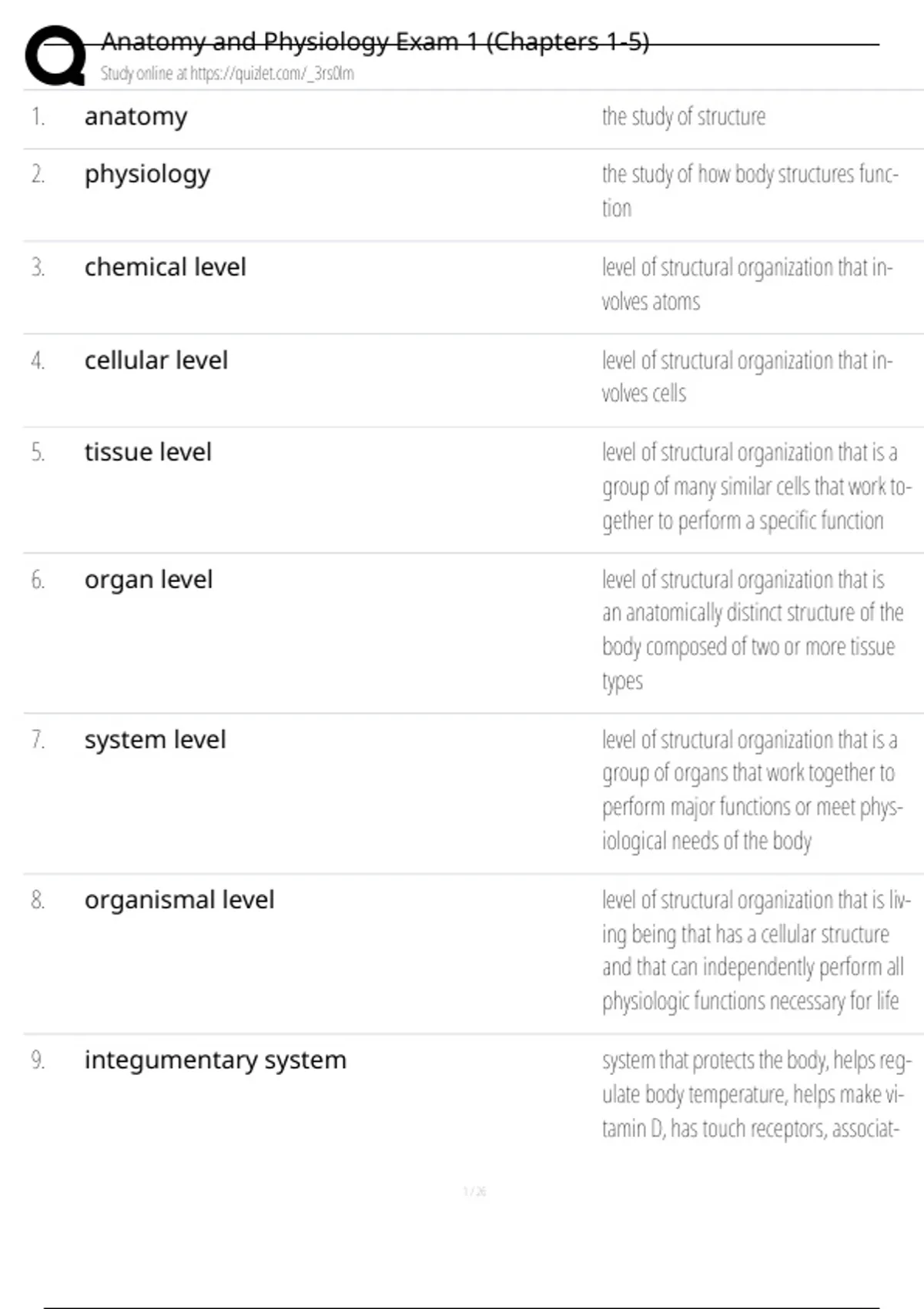 Anatomy and Physiology Exam 1 (Chapters 1-5)