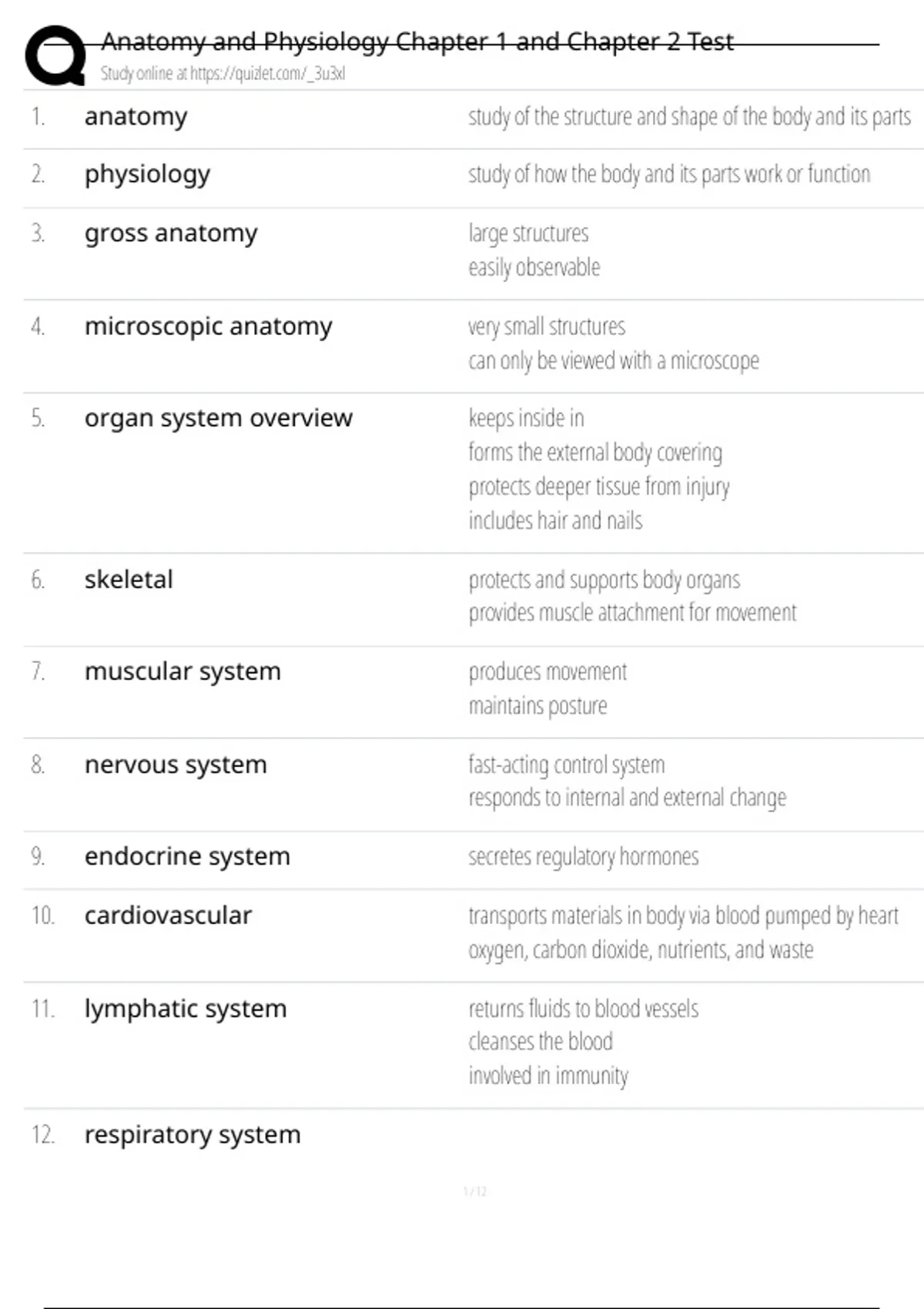 Anatomy and Physiology Chapter 1 and Chapter 2 Test