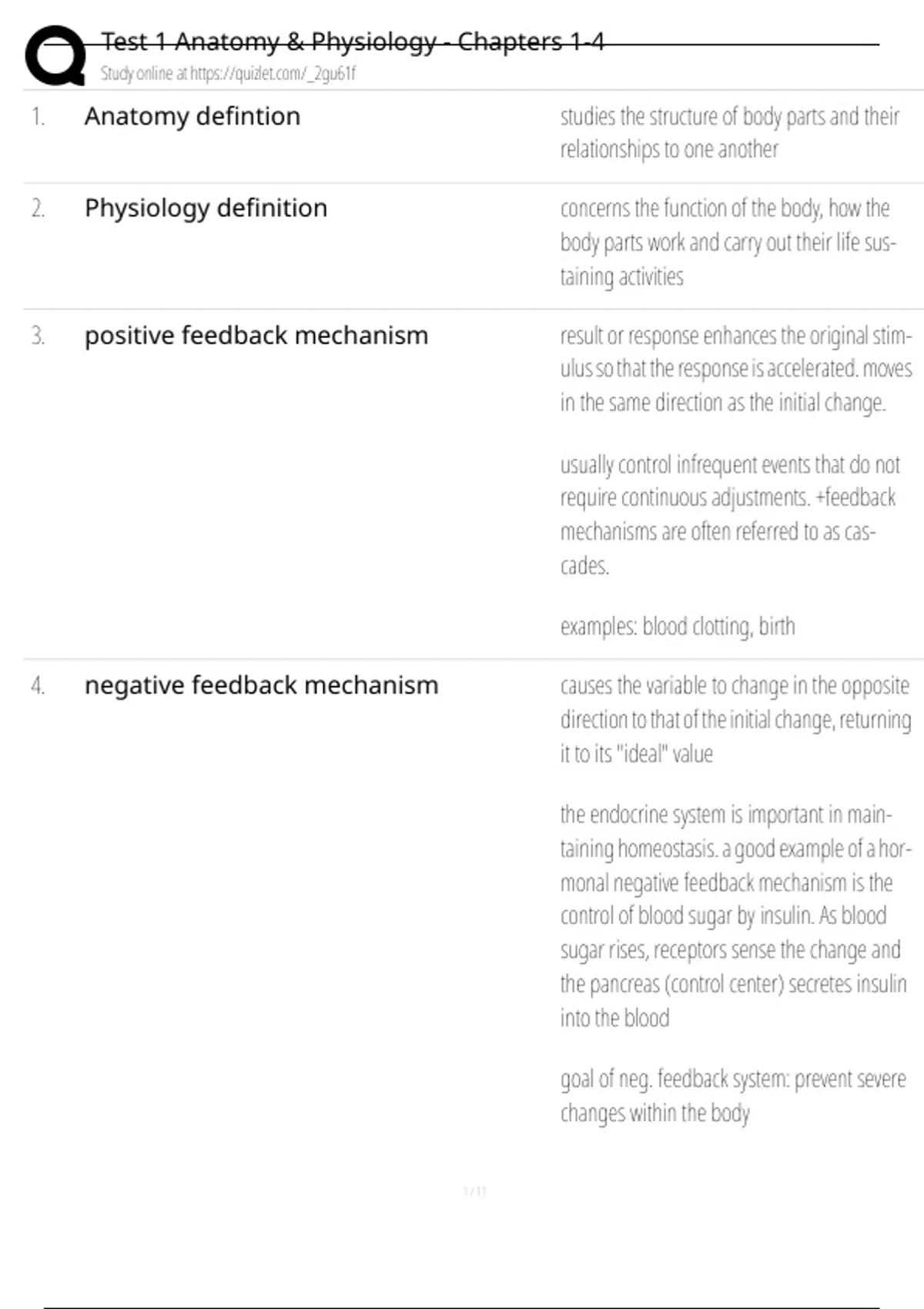 Test 1 Anatomy & Physiology - Chapters 1-4