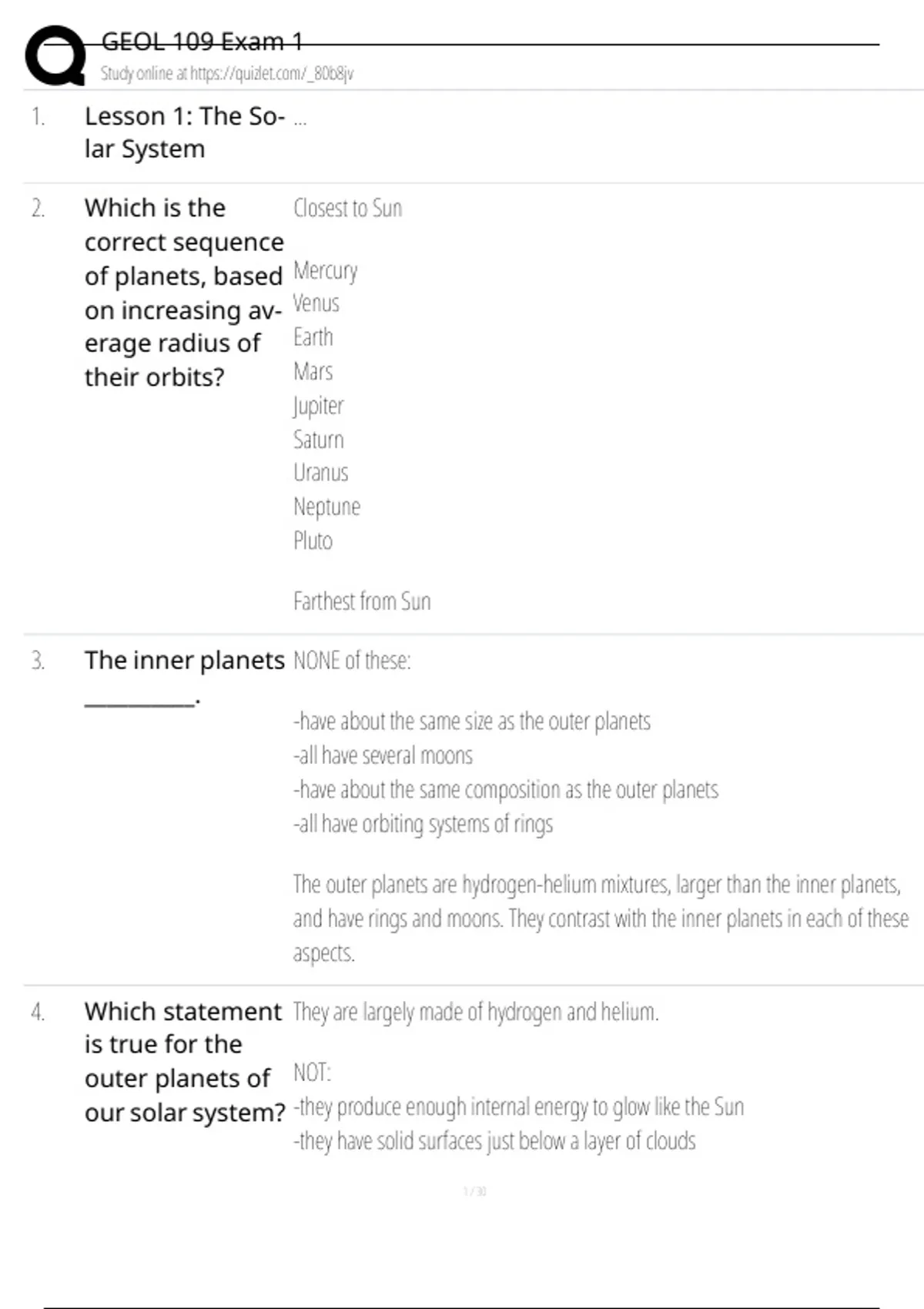 GEOL 109 Exam 1 Questions and Answers