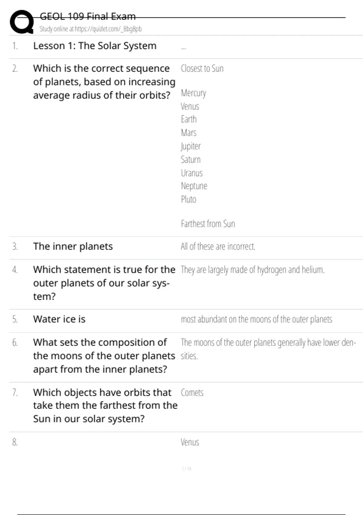 6. What sets the composition of The moons of the outer planets generally have lower den-